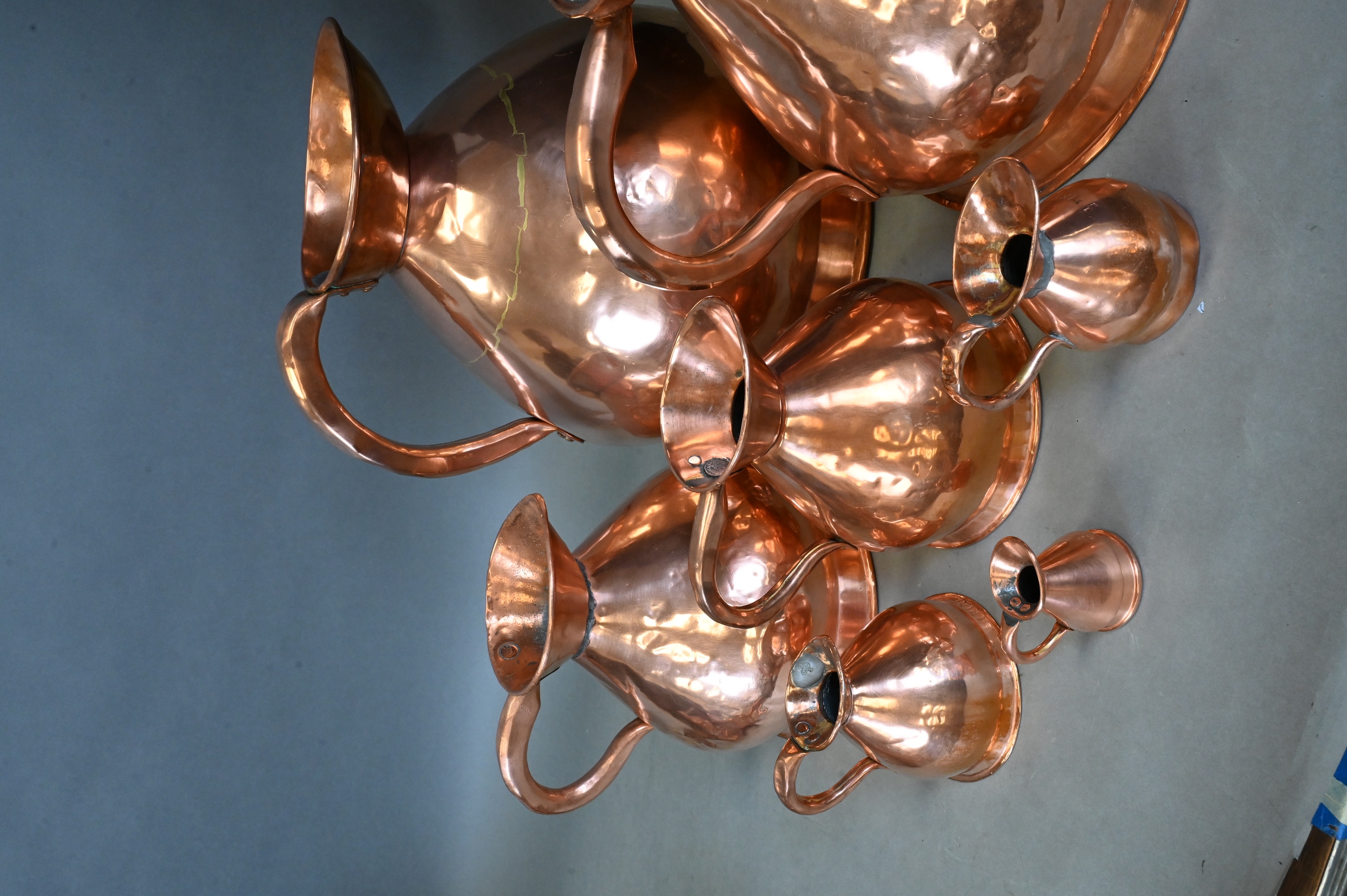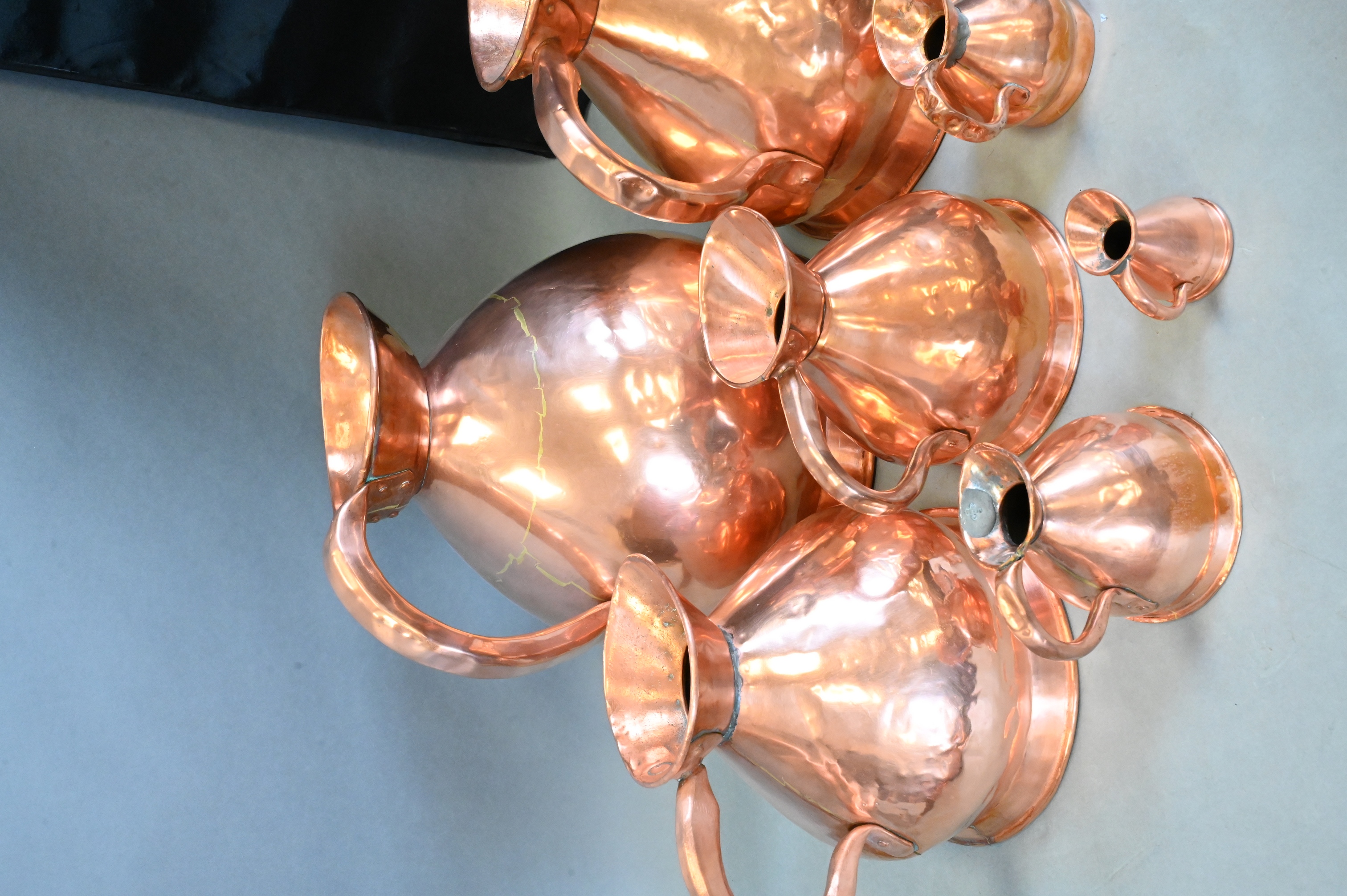 Lot 290: Set of Seven English Graduated Copper Measuring Jugs or “Haystacks”