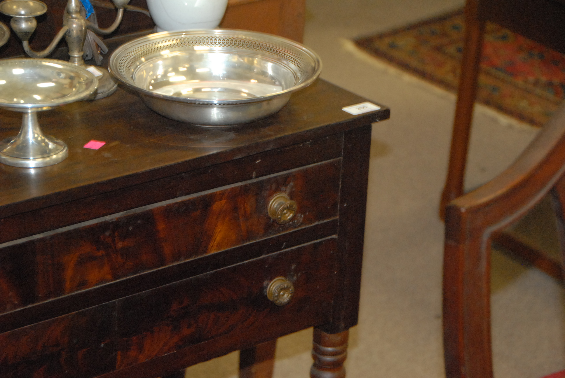 Sheraton mahogany two drawer server, circa 1830.