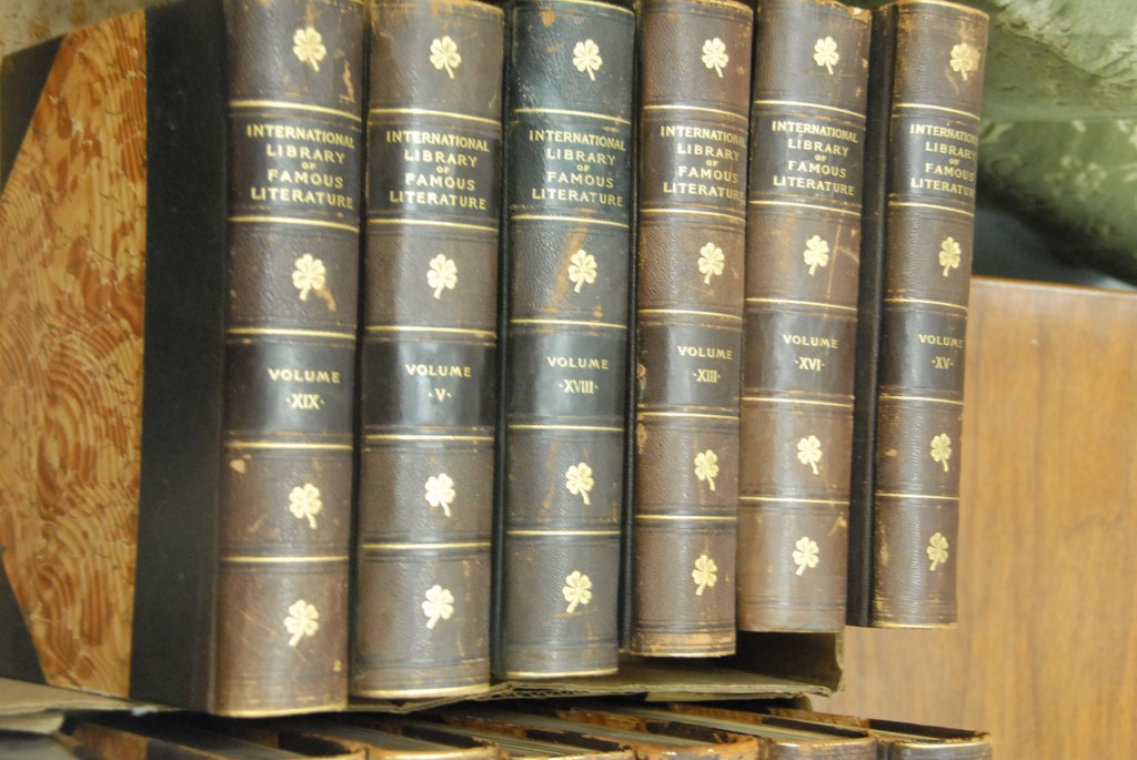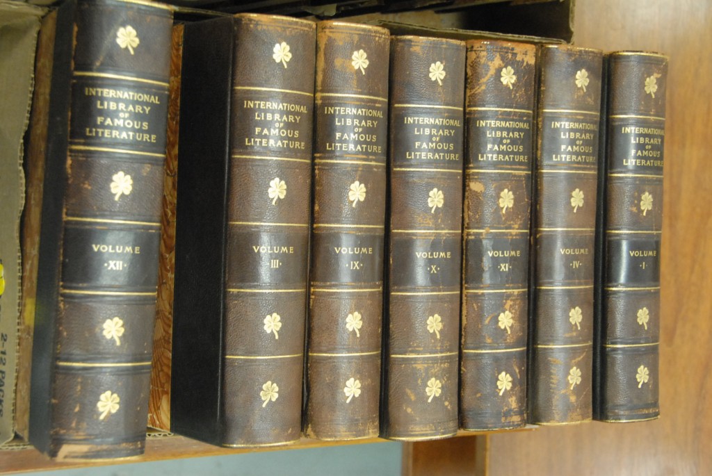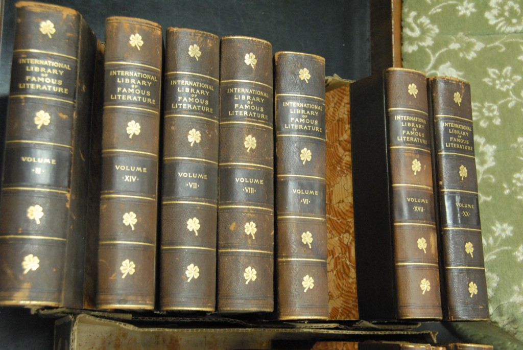 Lot 290: Three boxes of leather bound books International Library of Famous Literature.