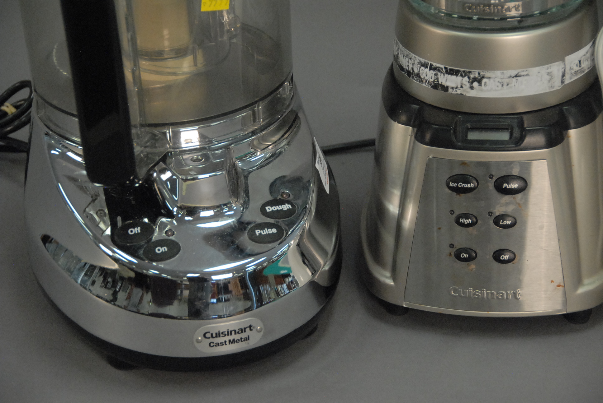 Three piece lot to include Cuisinart cast metal food processor, Cuisinart blender, and Cuisinart frozen yogurt ice cream maker.