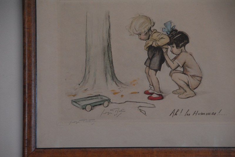 Two colored engravings by Georges Redon 1869-1943 to include Ah…Les Hommes… and Ne burey Jamais d’eau, both signed in plate and one pencil signed.