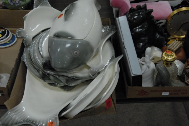 Lot 291: 5 box lots to include pottery fish set, filigree