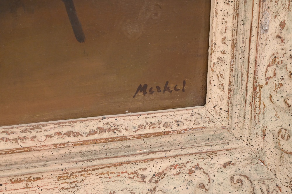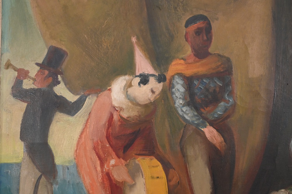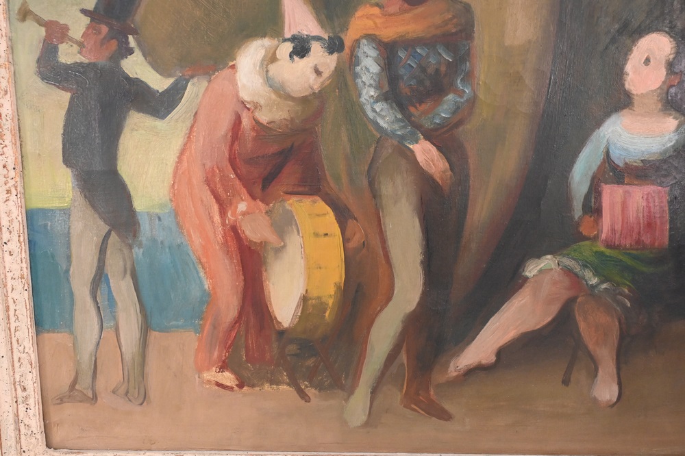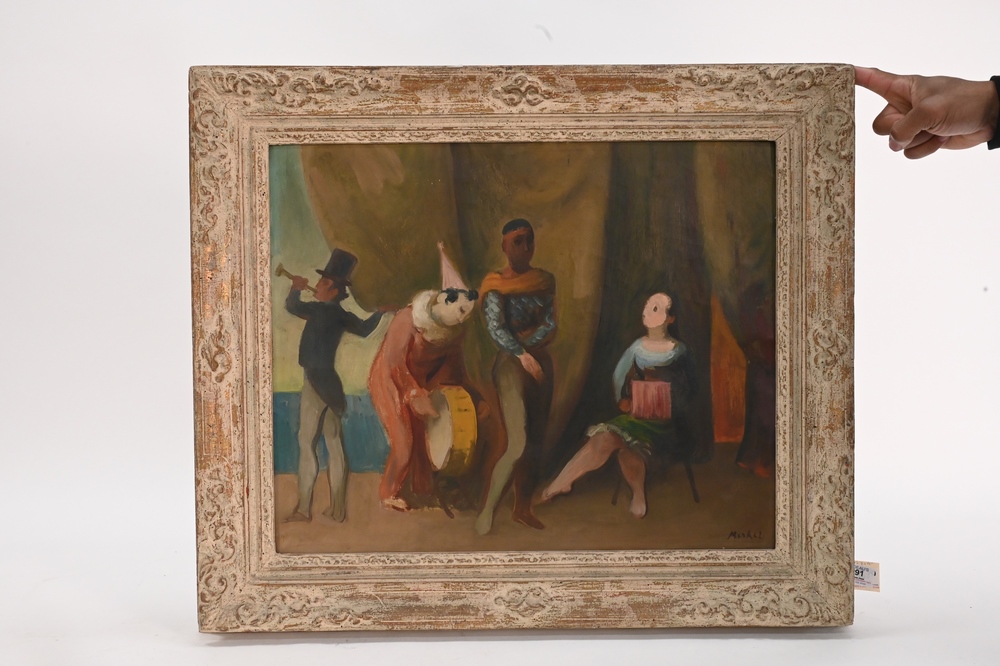 Lot 291: George Merkel (1881 – 1976), Pierrot Et Pierrette, Circus Clown, oil on canvas, signed lower right Merkel , two stamps on back of ca…