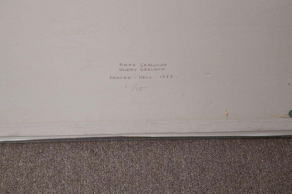 Lot 291: Gerlovina & Gerlovin, Heaven/Hell, 1989, Ektacolor print, original, from Saupra Foundation, 36″ x 36″.