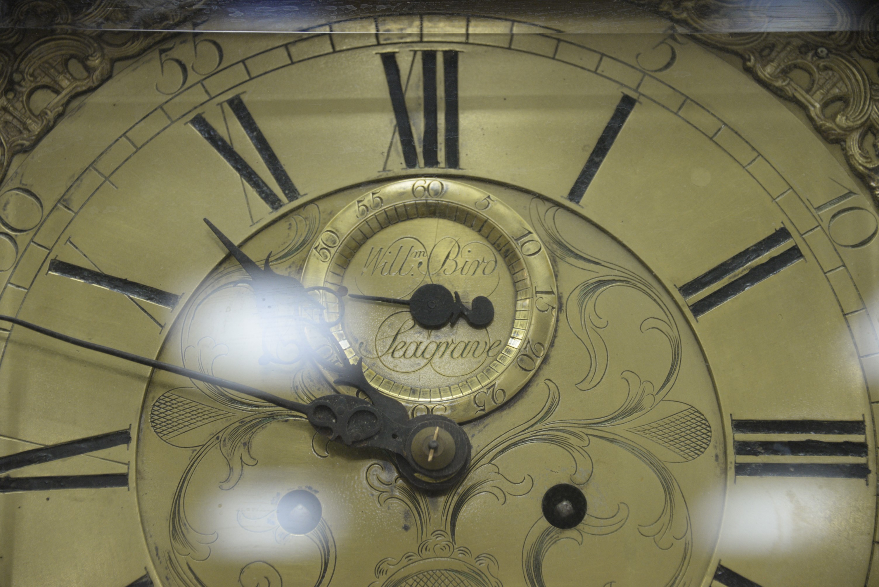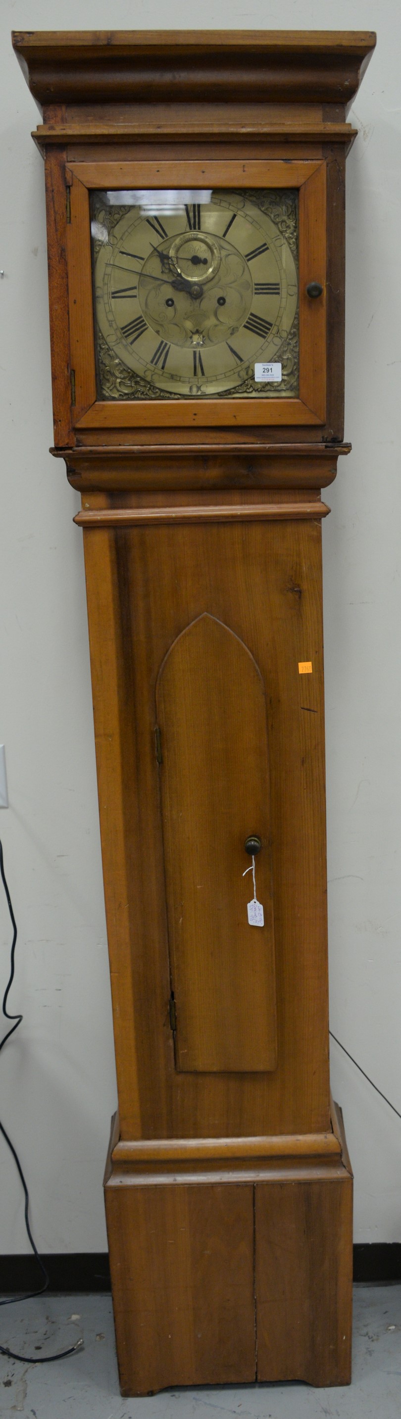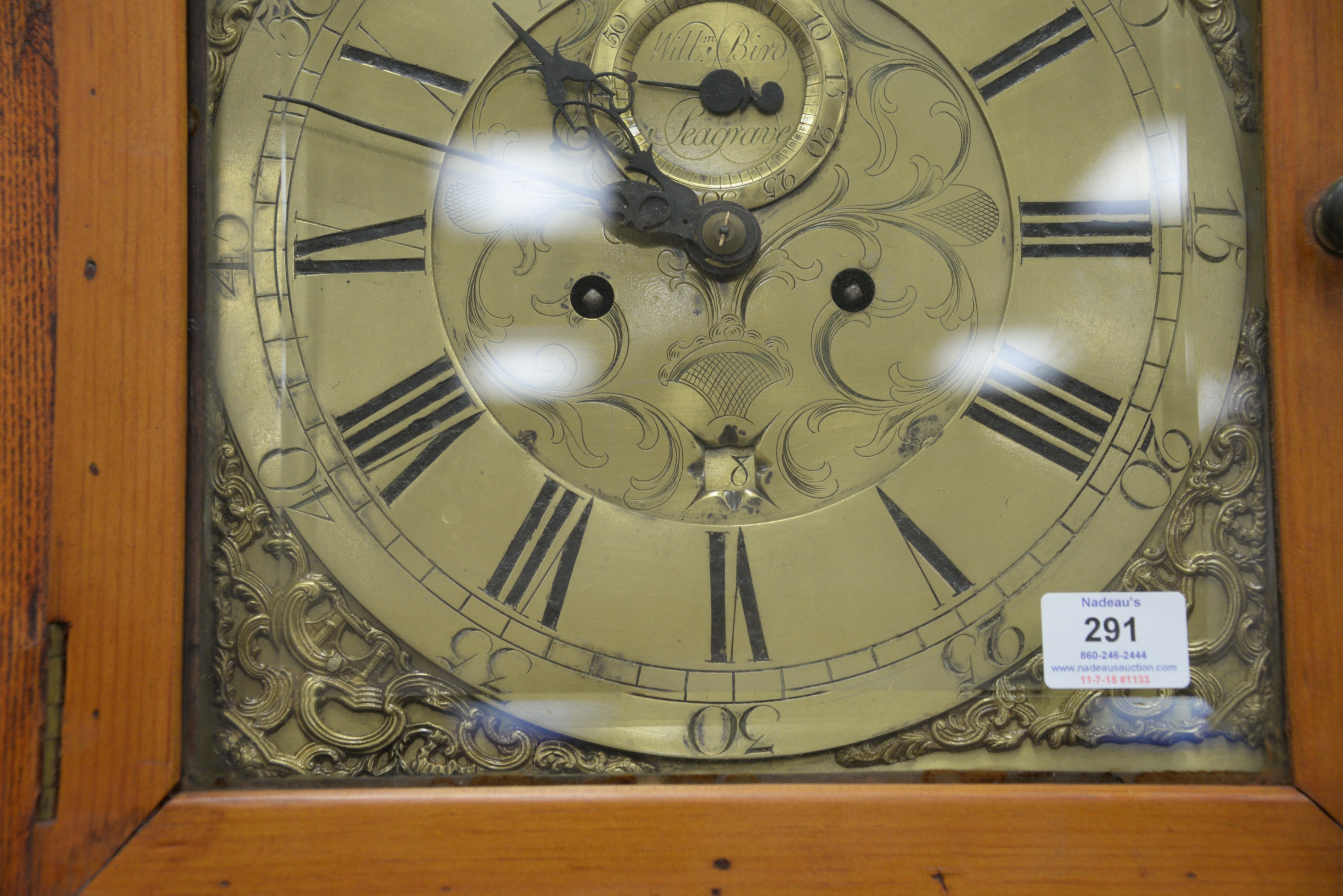 Lot 291: Pine tall case clock having square brass dial and brass works, dial inscribed Wm. Bird Seagrave. ht. 87 1/2 in. case wd. 14 in.
