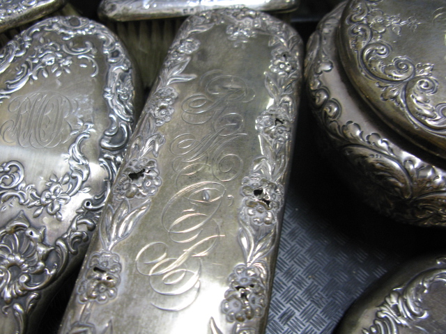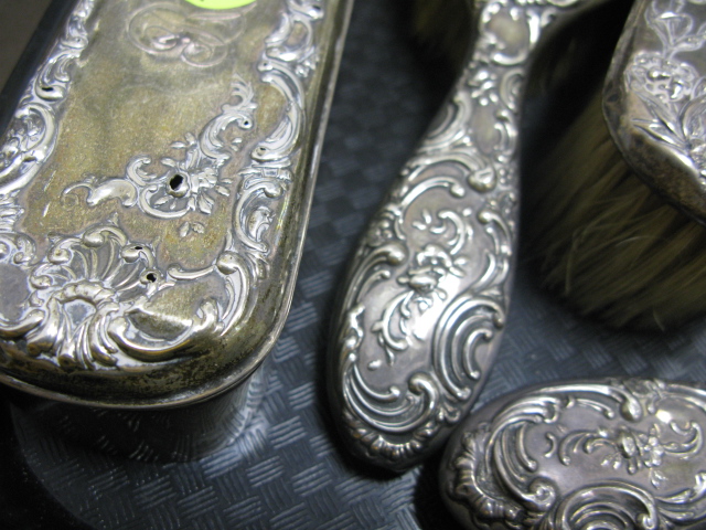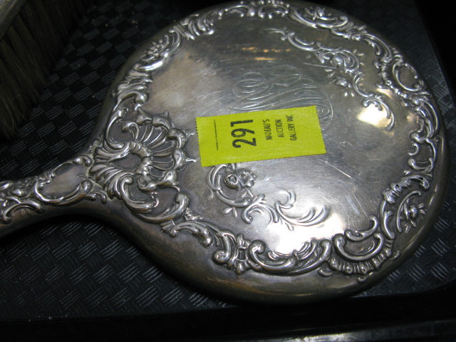Lot 291: Seven piece sterling dresser set with 6 matching