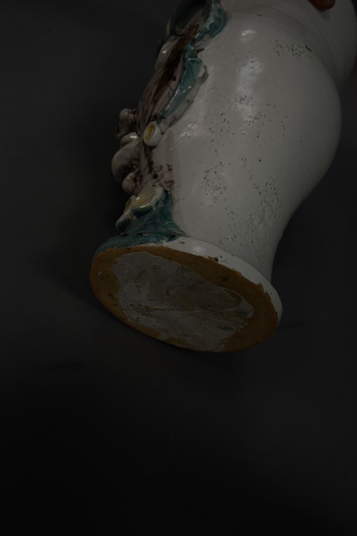 Lot 291: Two piece lot to include large ceramic face vase white glaze with molded painted face unsigned ht. 17in. and large ceramic Majolic…