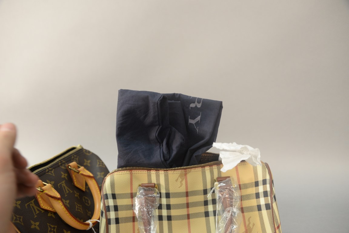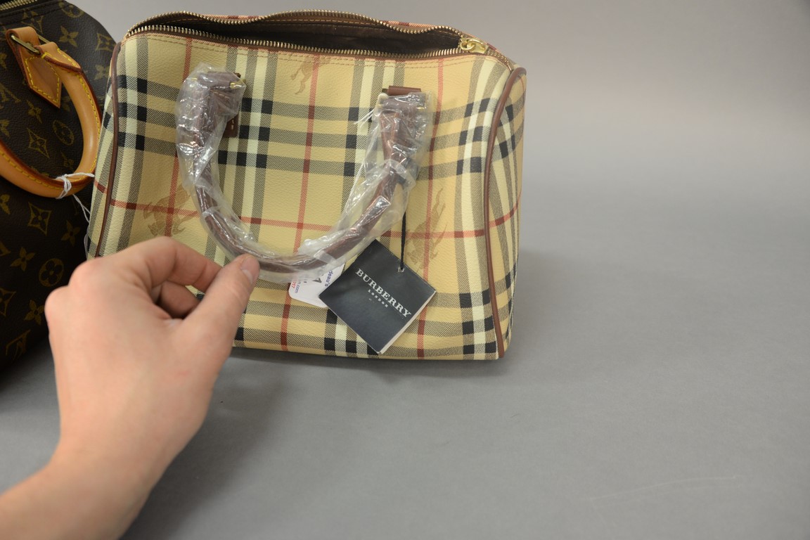 Two purses to include Louis Vuitton Speedy 25 monogram handbag and new Burberry London handbag with tag and plastic.