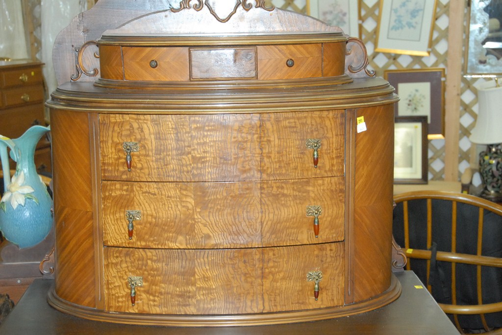 Walnut chest with unusual rounded top and night stand, ht. 64.