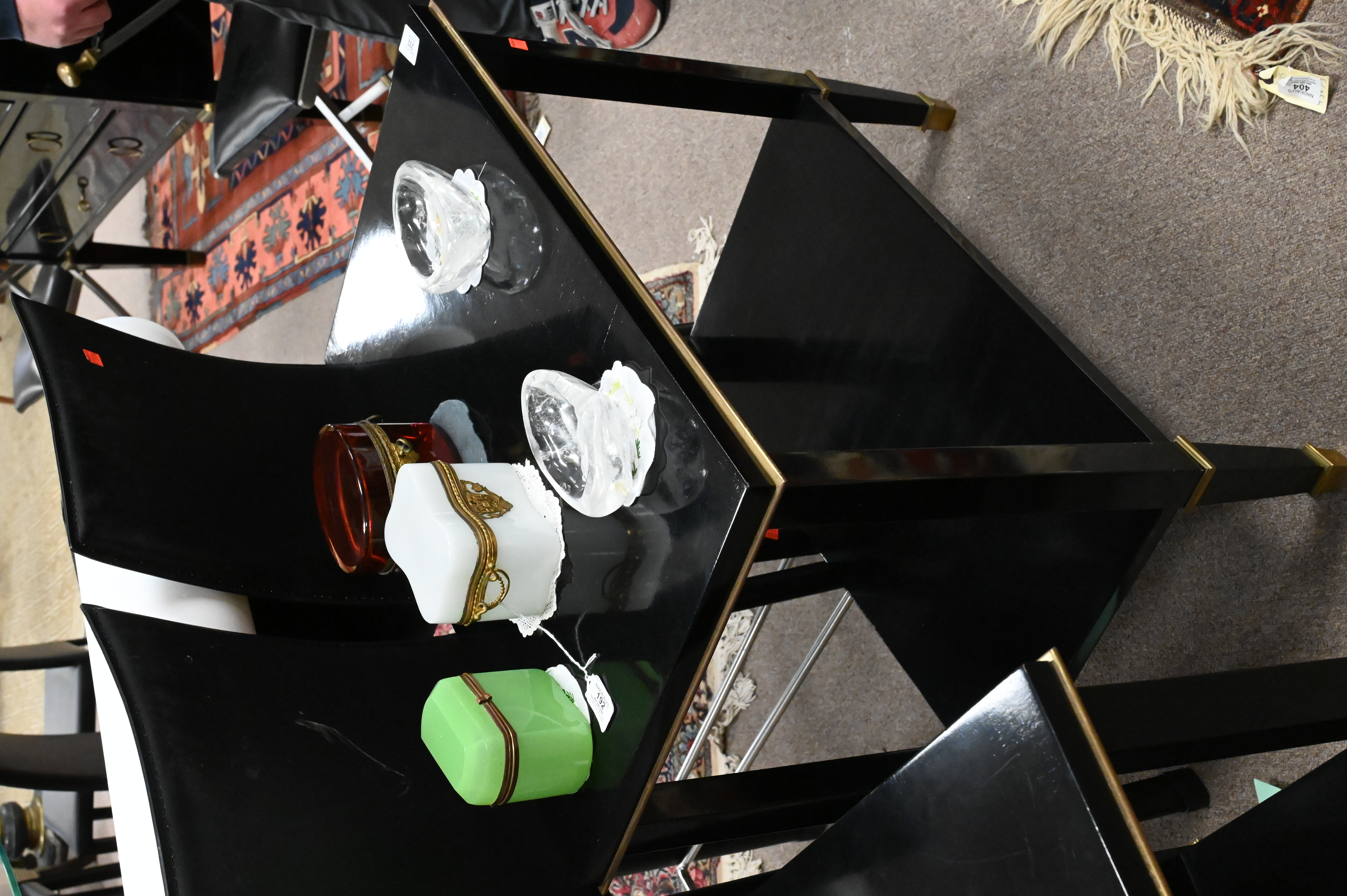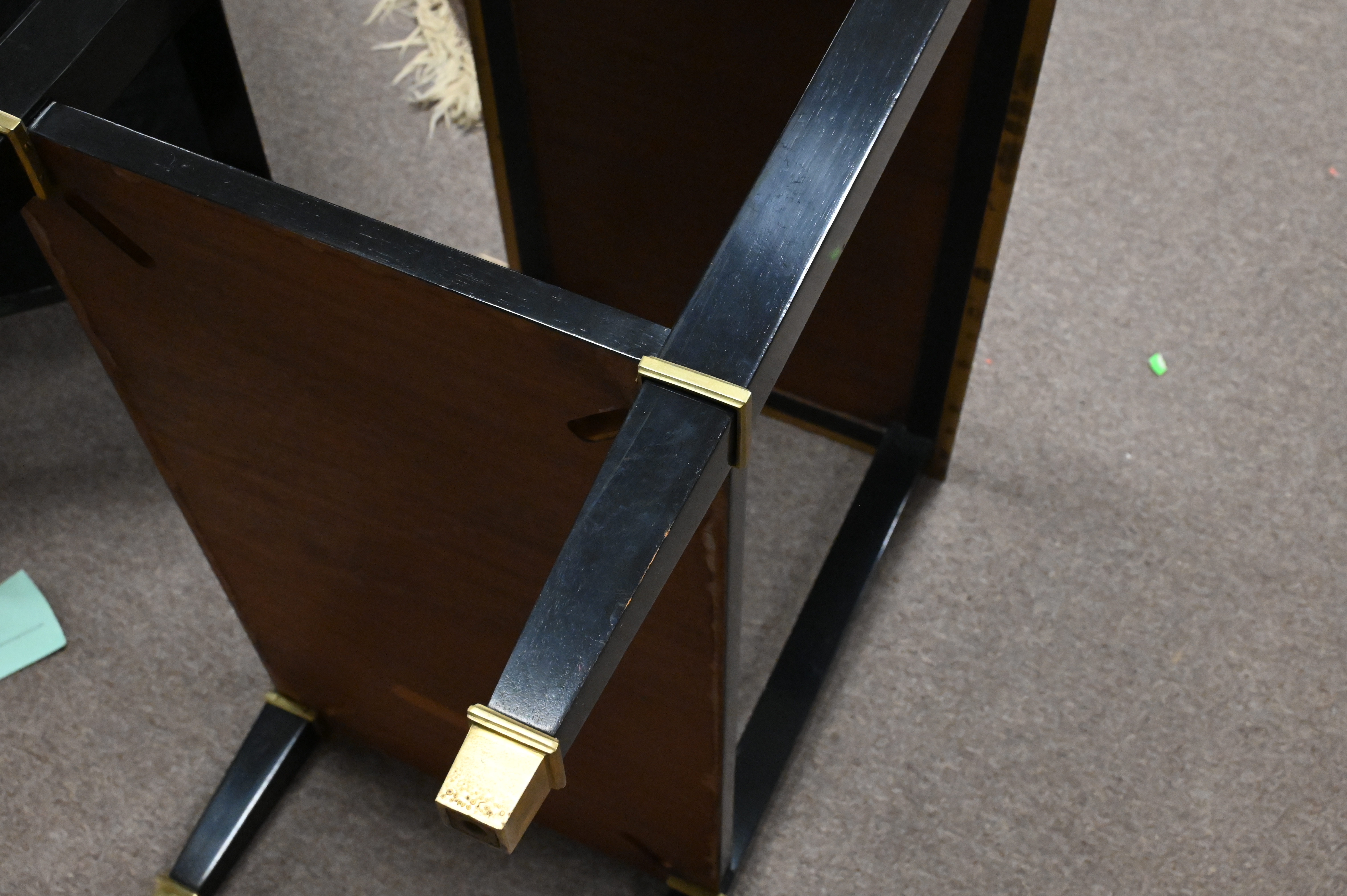 Lot 292: Attributed to Maisen Jansen Pair of Dark Lacquered Wood and Bronze Side Tables