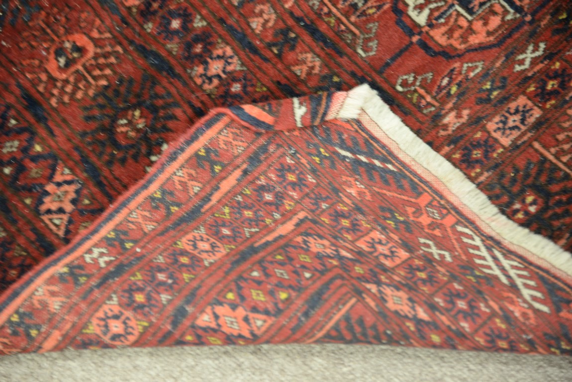 Lot 292: Bokhara Oriental scatter rug. 3’11 x 5′
