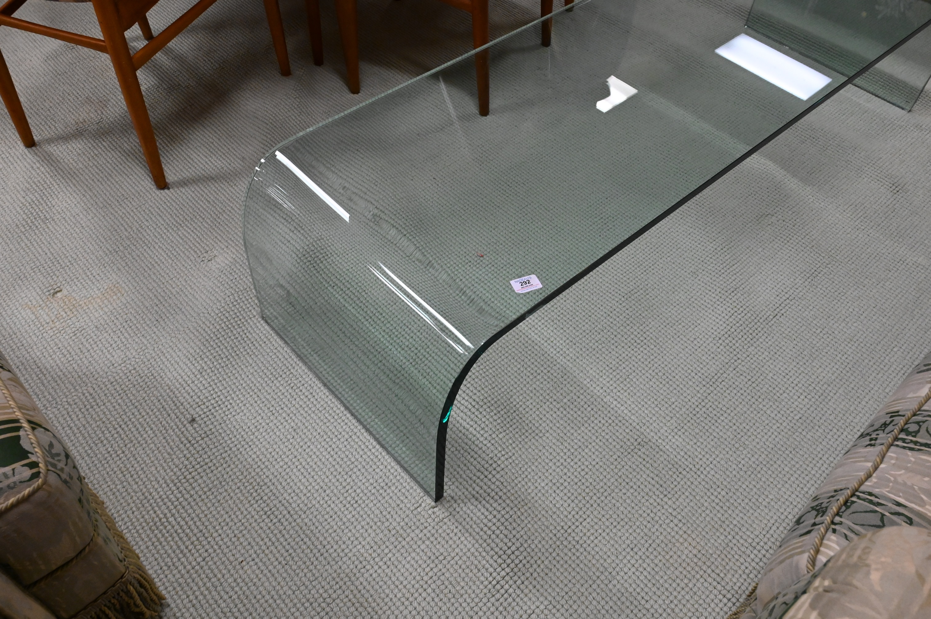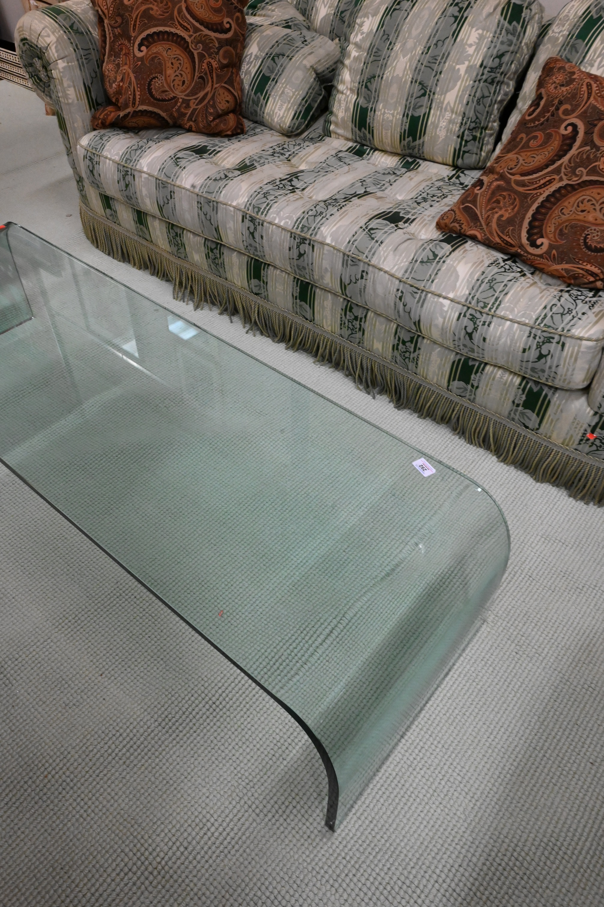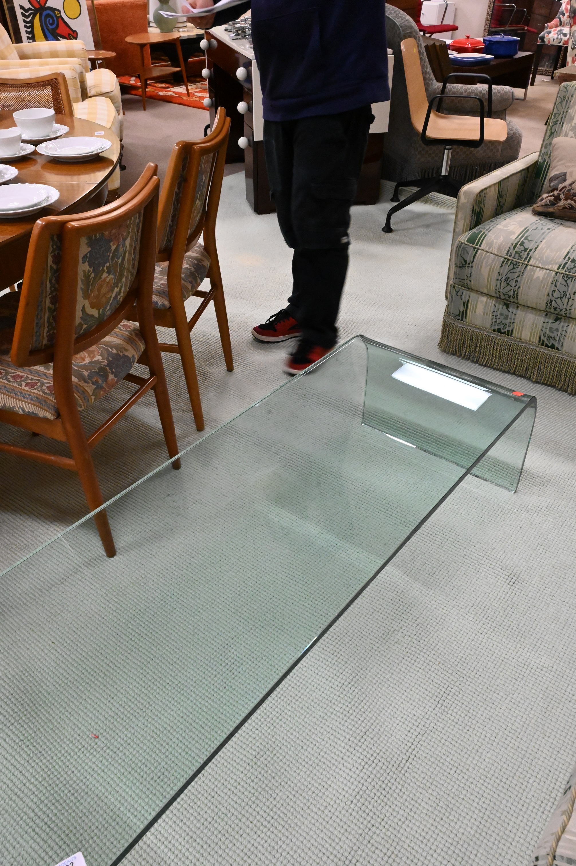 Contemporary Glass “Waterfall” Coffee Table, height 14 inches, top 20″ x 60″.