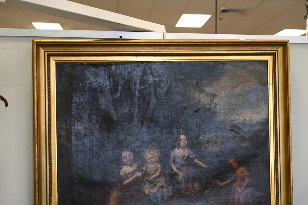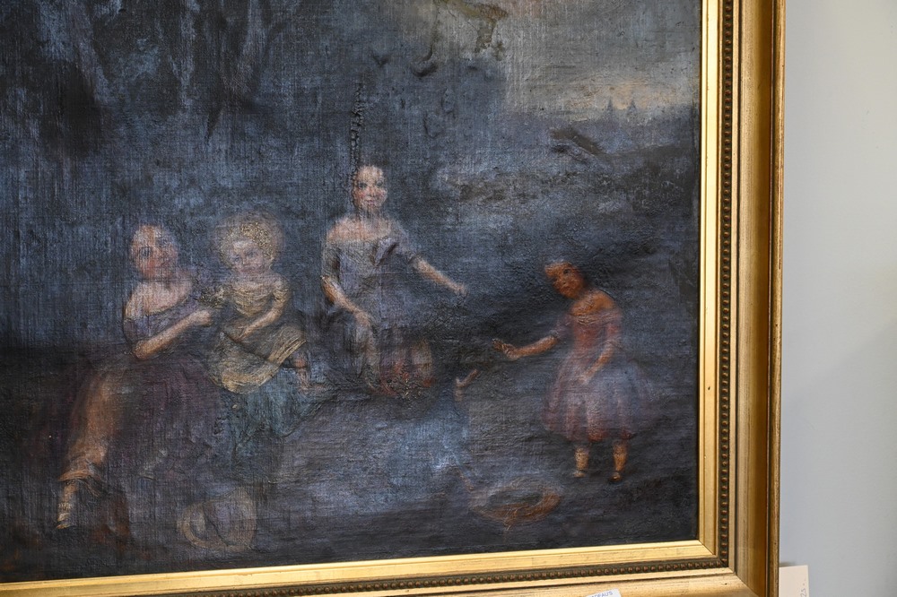 Lot 292: Continental School, children in pastoral scene, oil on canvas, 19th century, unsigned, 25 x 30 inches.