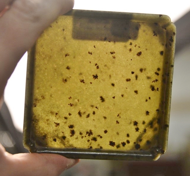 Jade spinach green square footed tray. 3 1/4 x 3 1/4