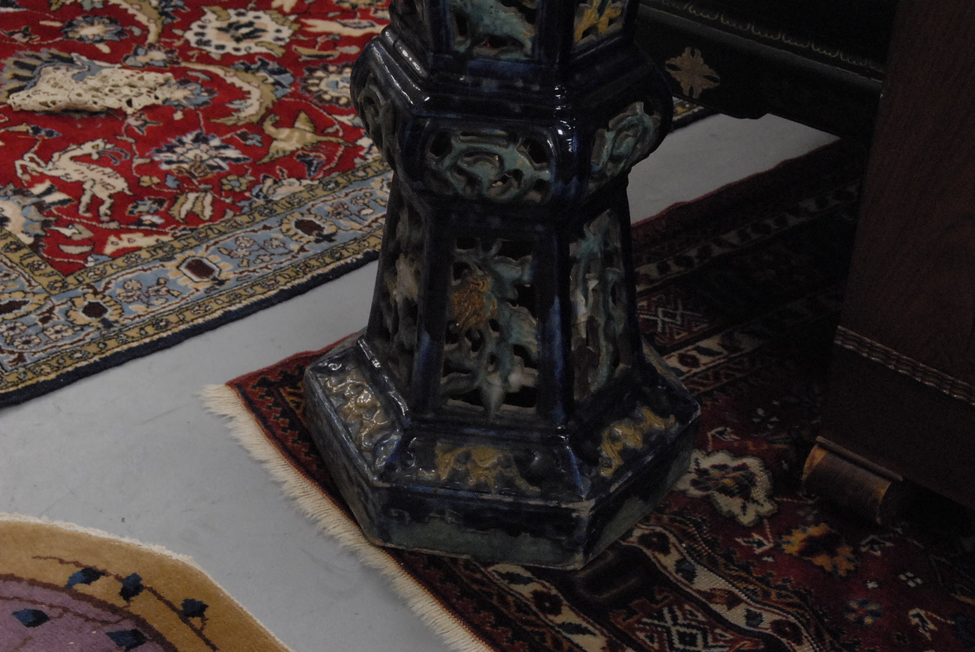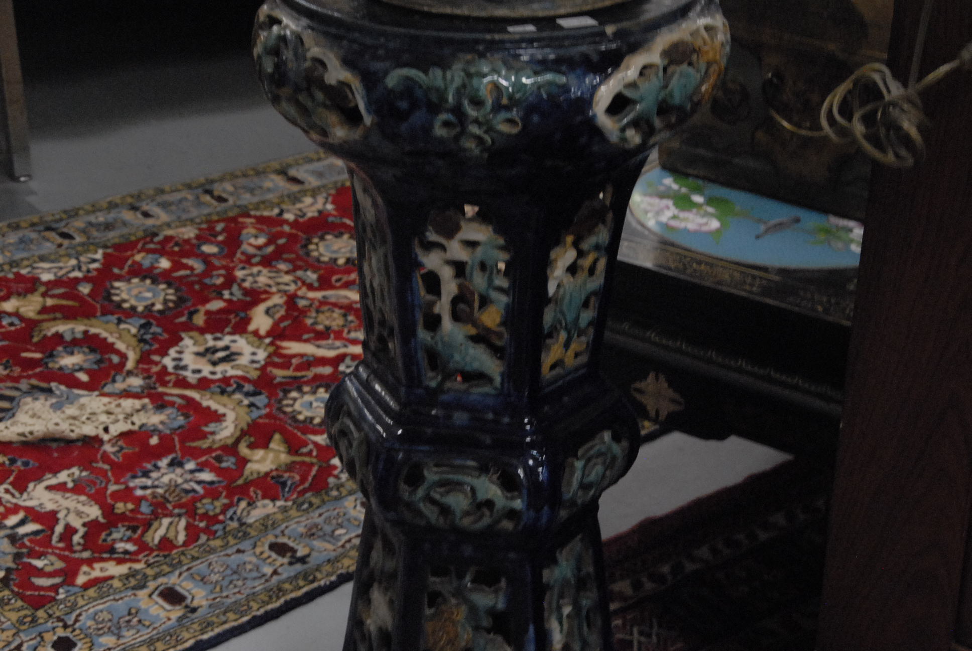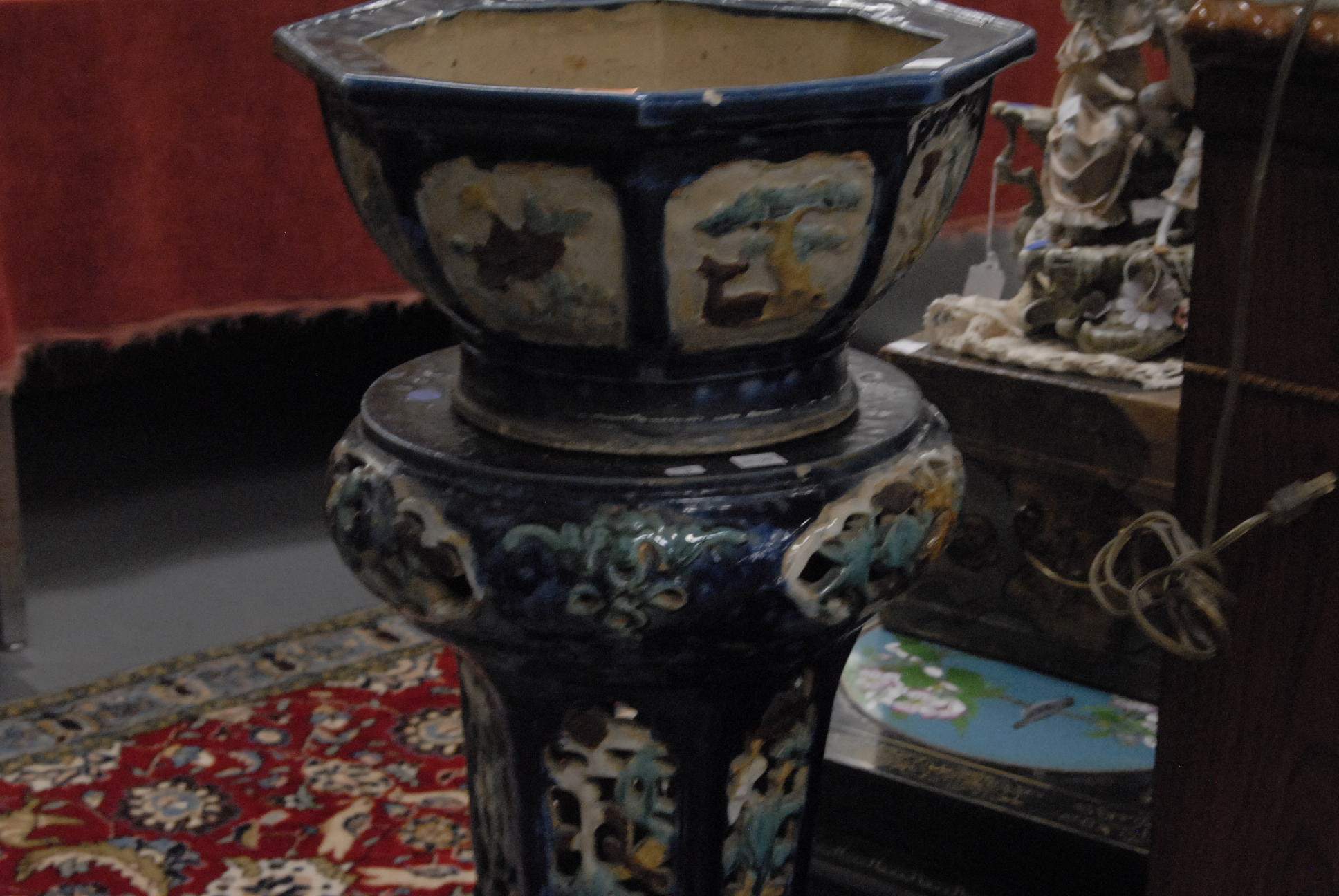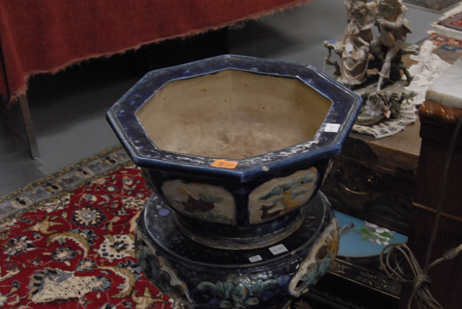 Oriental porcelain pedestal with jardenier