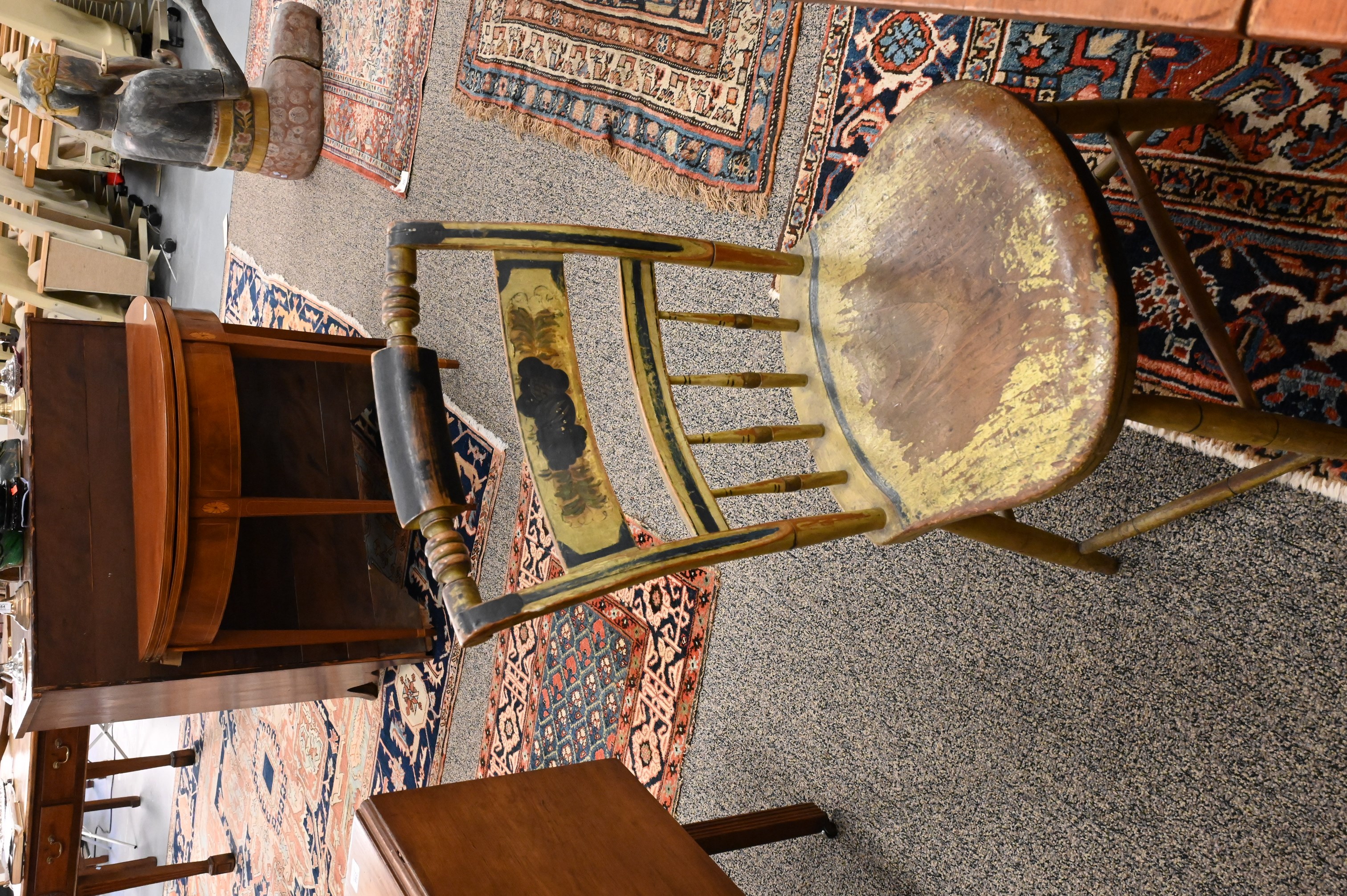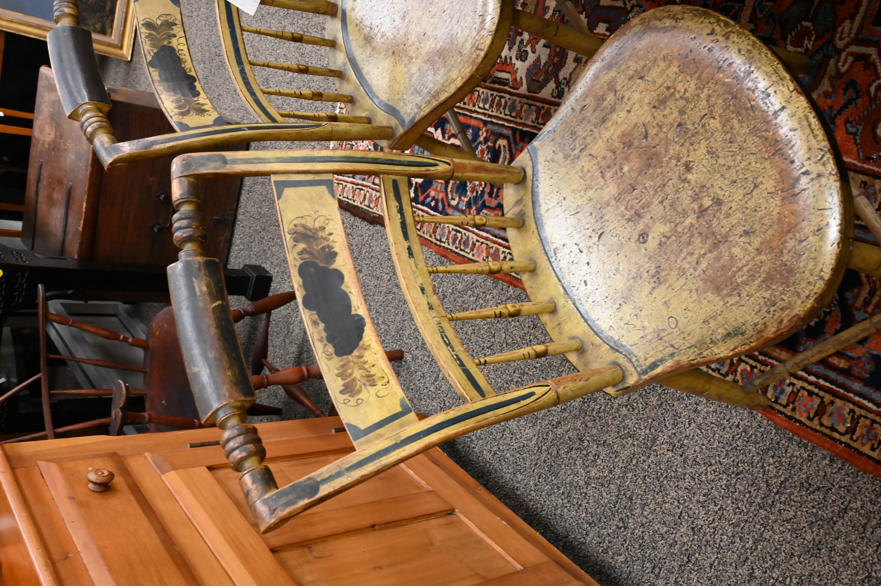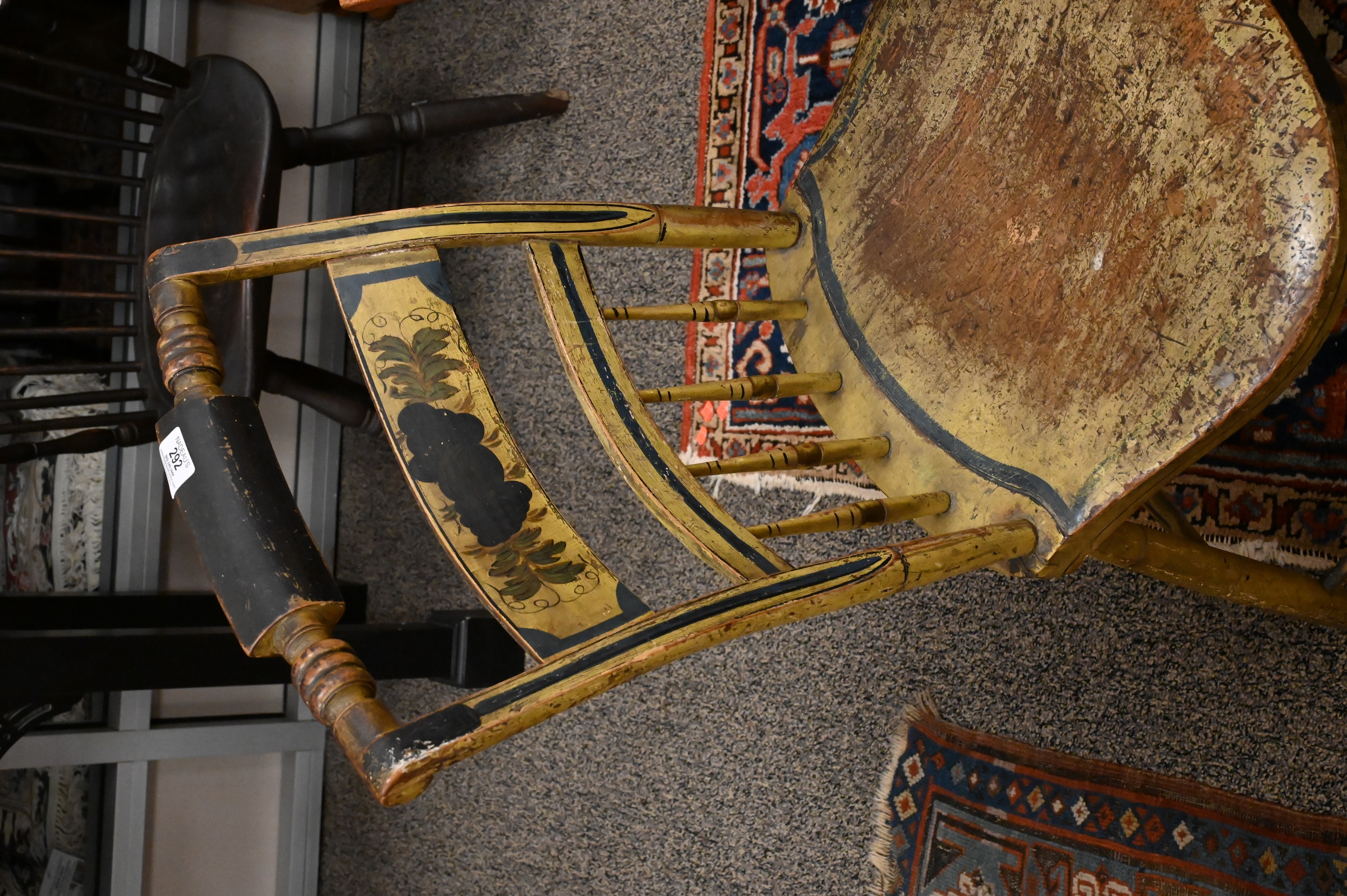having yellow paint and stenciling, seats worn