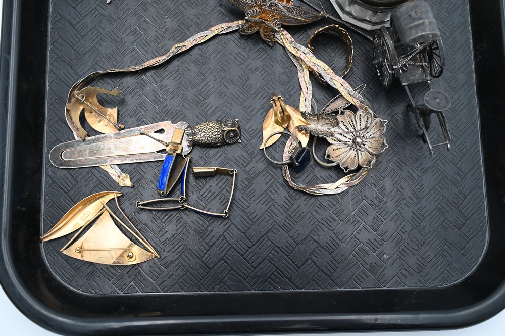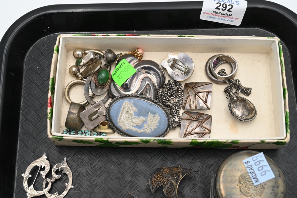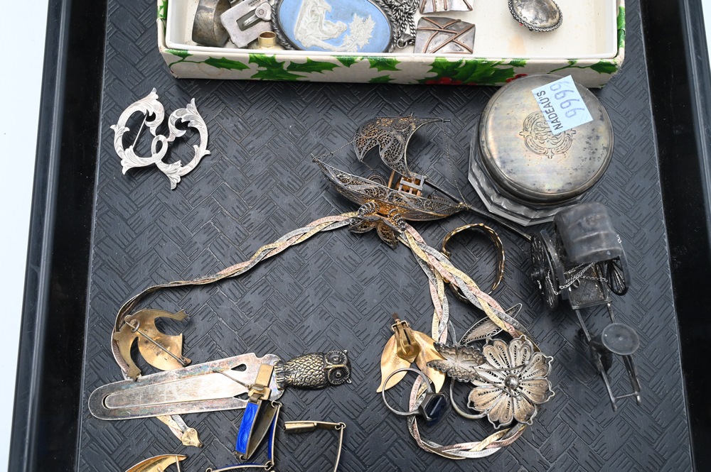 Tray Lot of Silver Trinkets and Enamel Tiffany Key Ring.