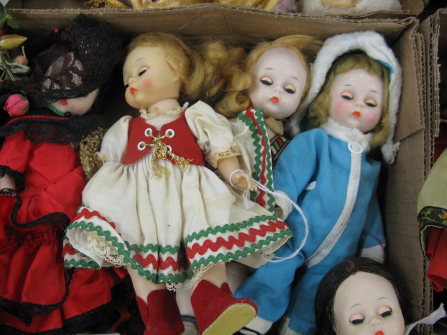 Two box lots to include eight Madame Alexander dolls and fifteen small dolls