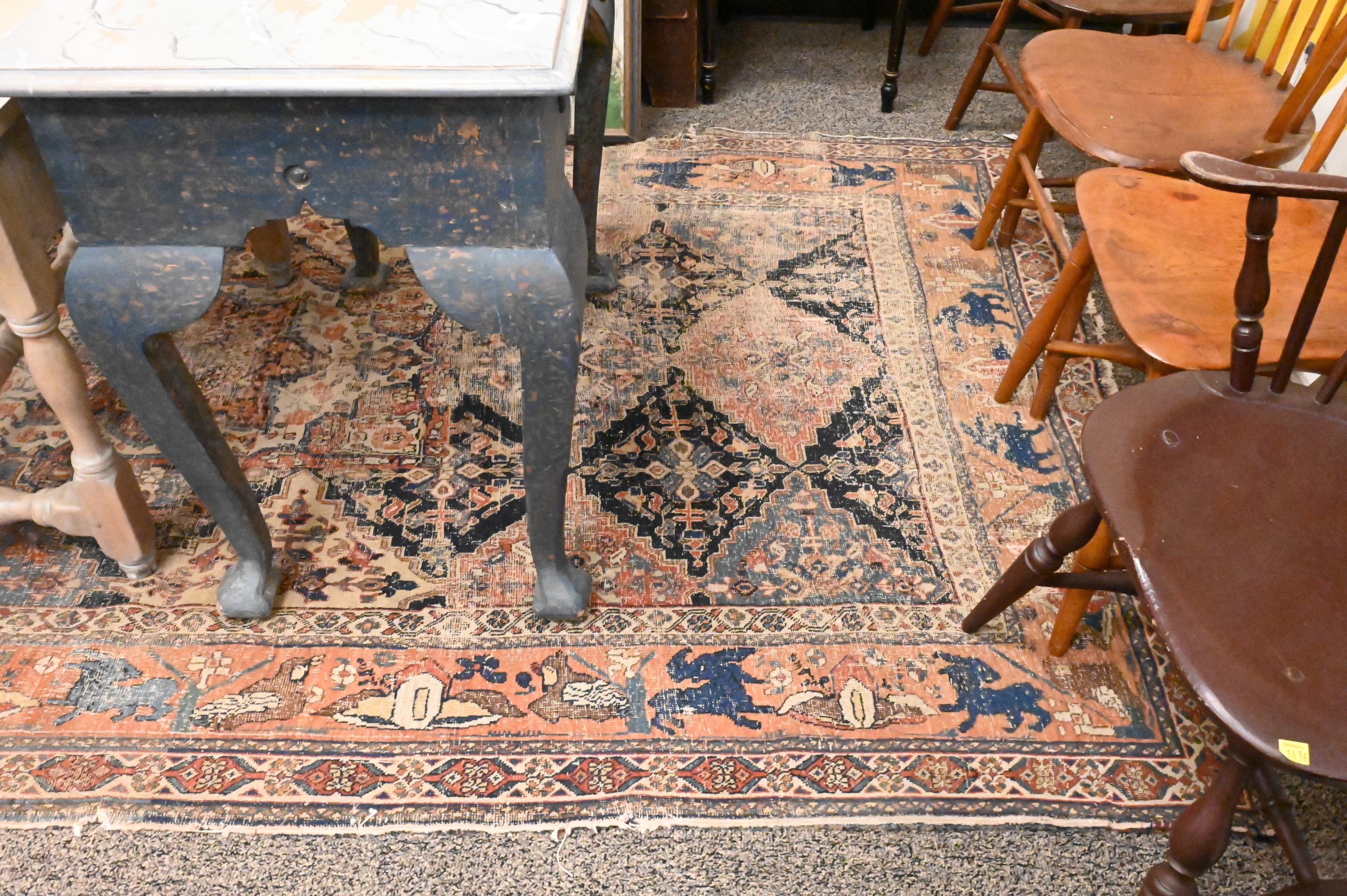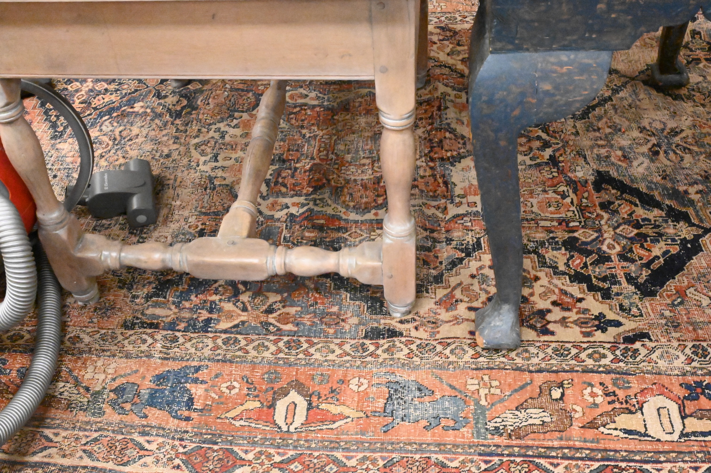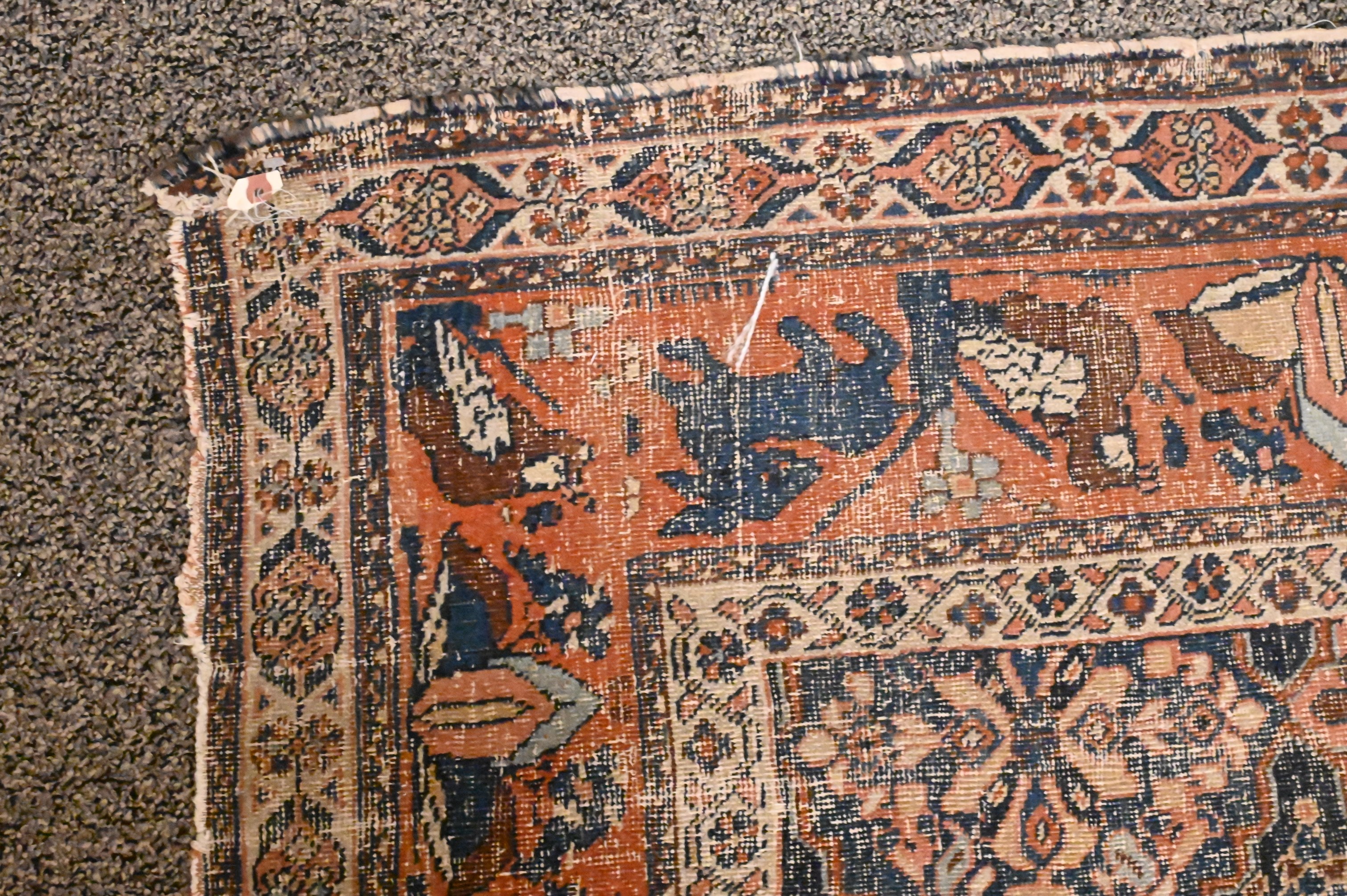 Two Oriental Throw Rugs, 5′ 3″ x 9′ 2″, 4′ 8″ x 9′ 7″, wear to rugs