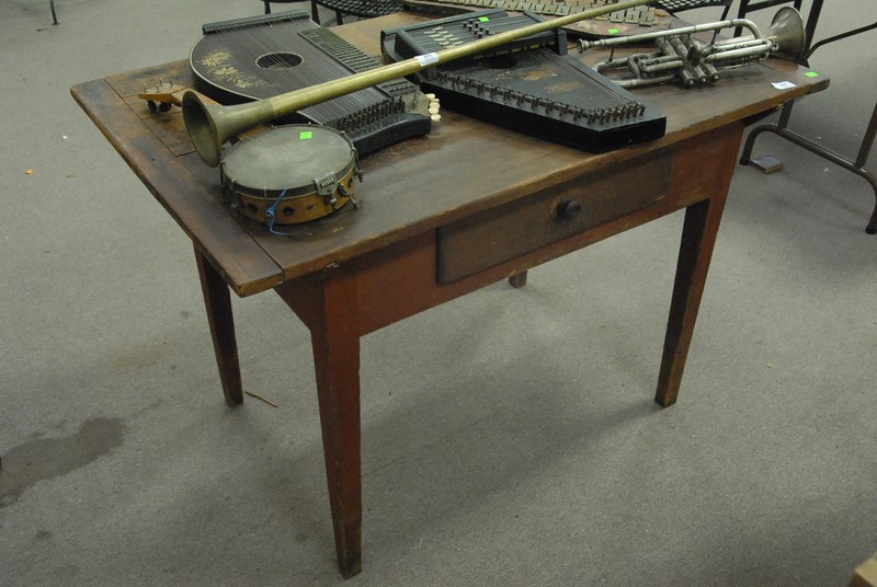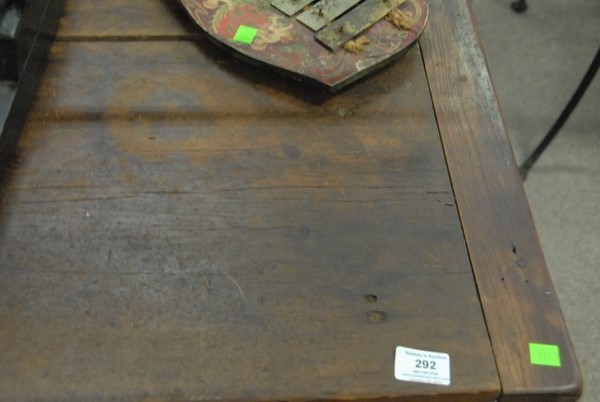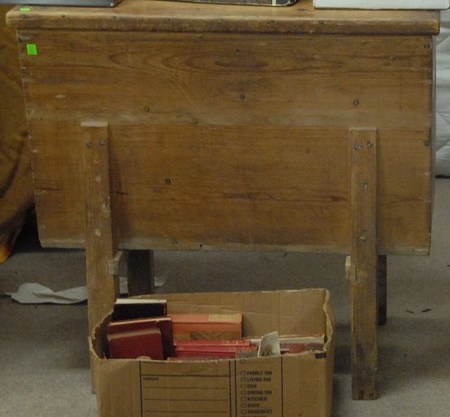 Two piece lot to include pine breadboard top table, and dough box.