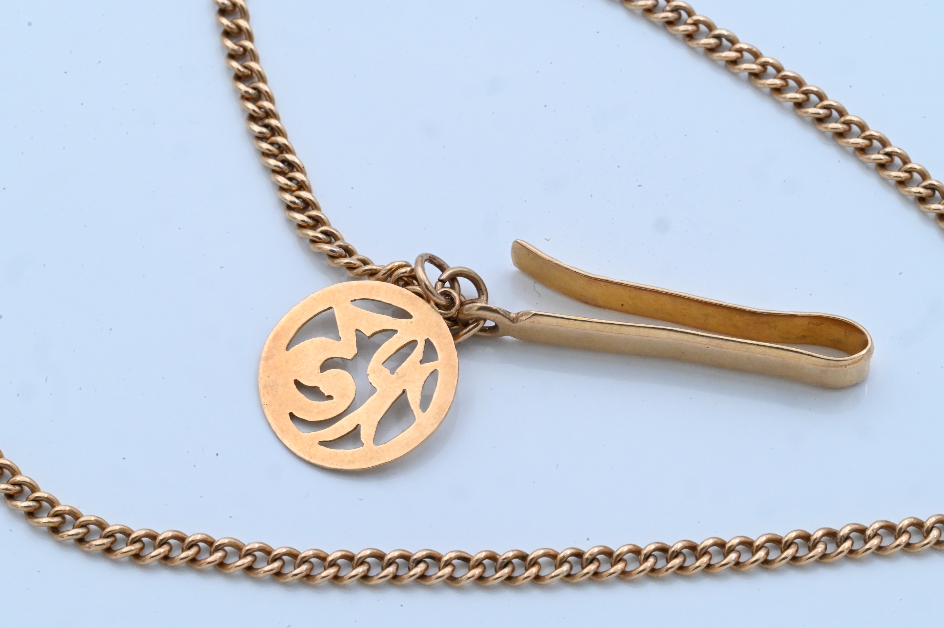 Lot 293: 14K Yellow Gold Watch Chain with Monogram Fob