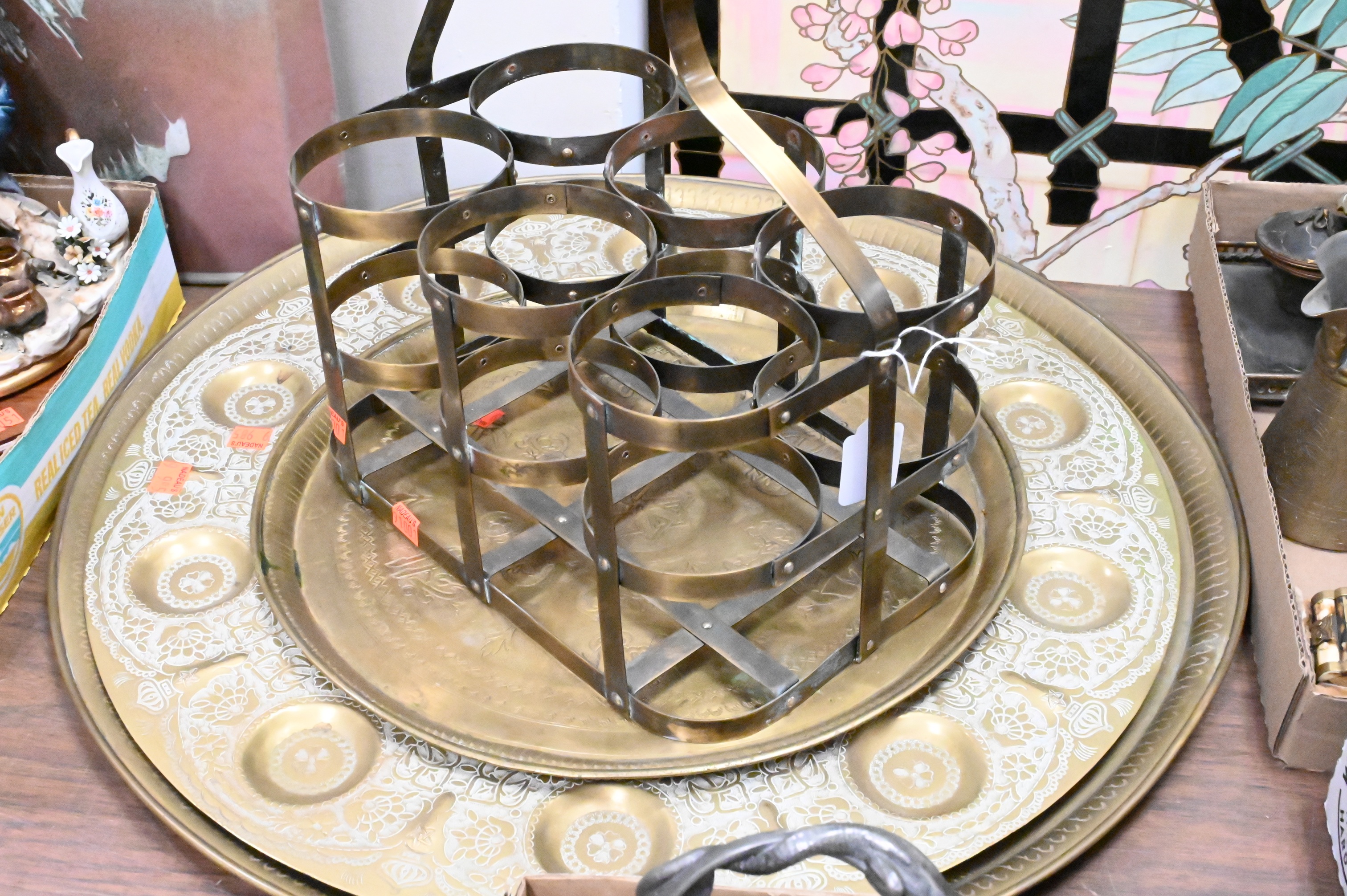 Four Tray Lots of Mostly Islamic Brass to include