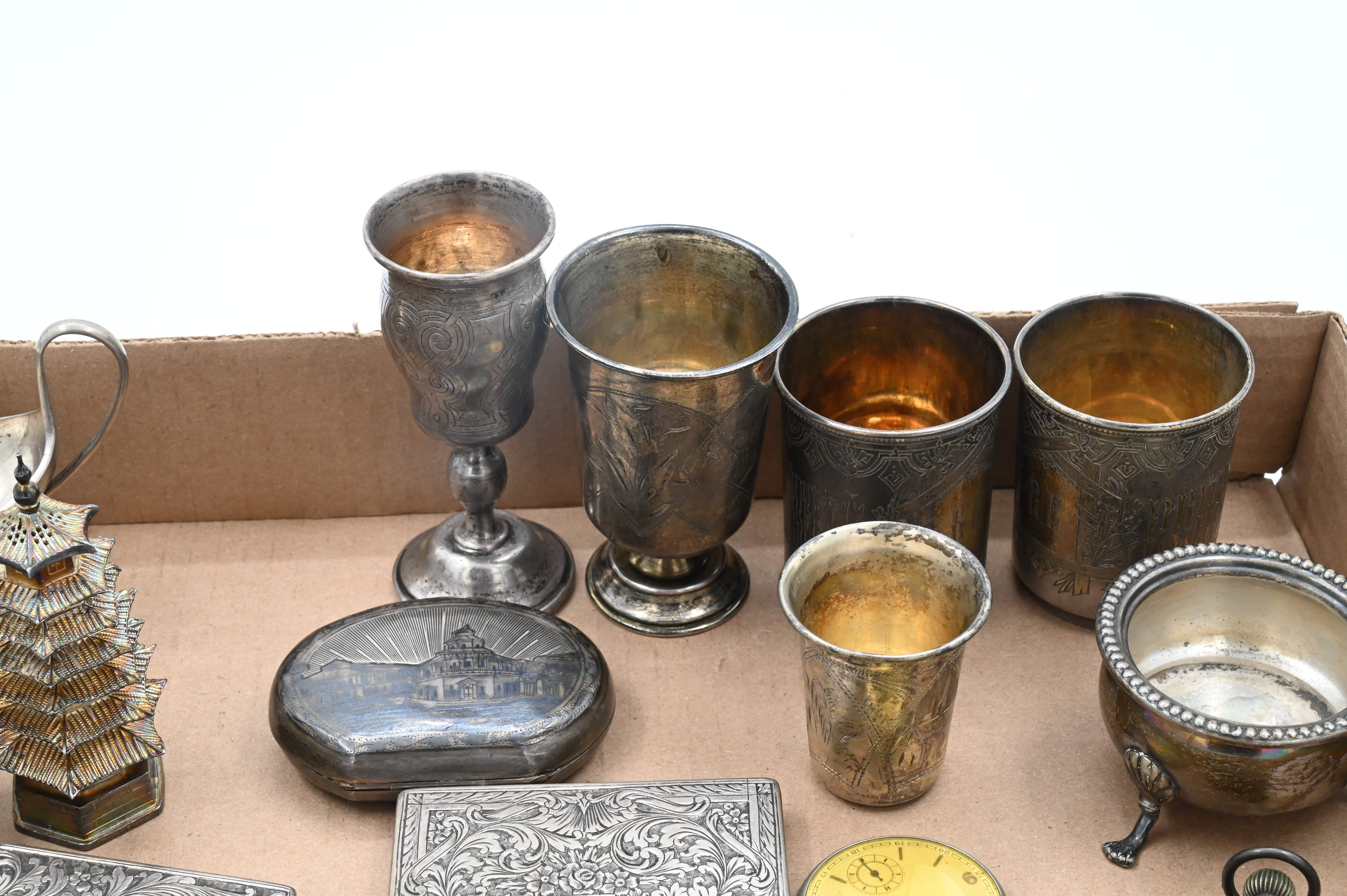to include three Russian cups, Japanese Pagoda, watches, etcetera