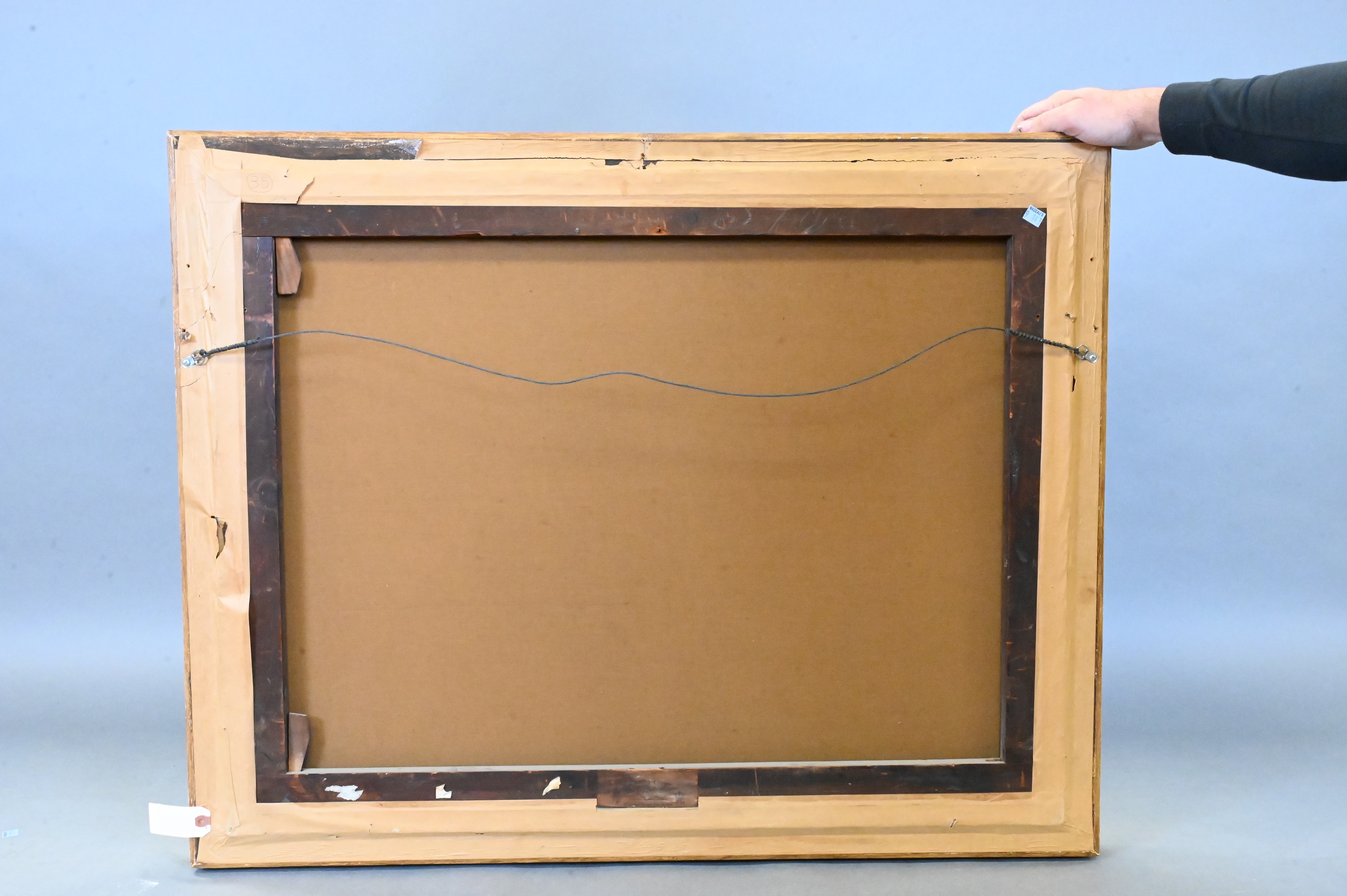 Presents well, varnish. Heavy inpainting, top, around horse, bottom foreground. Craquelure, edgeware.