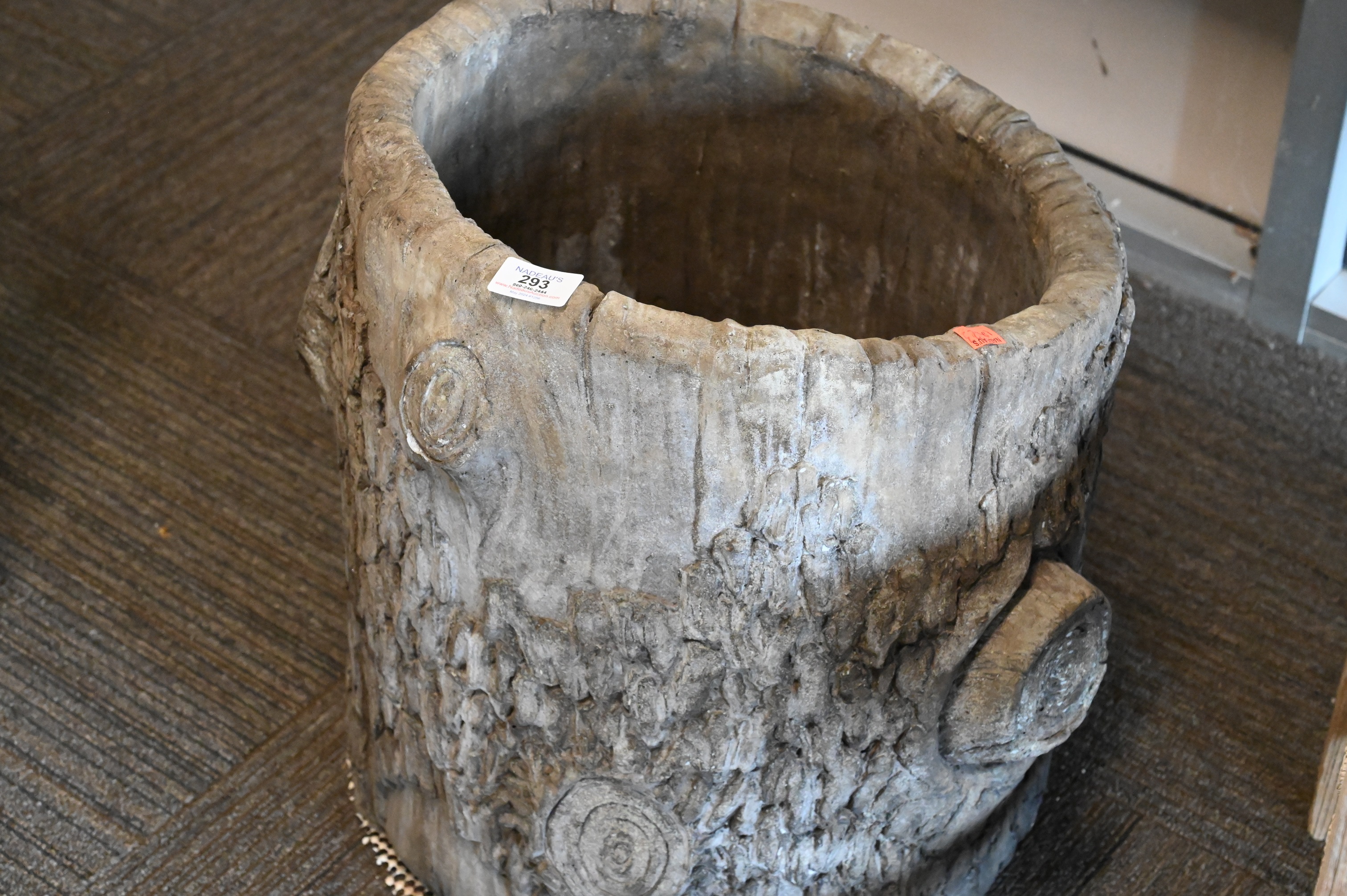 Lot 293: Outdoor Cement Faux Tree Stump Planter