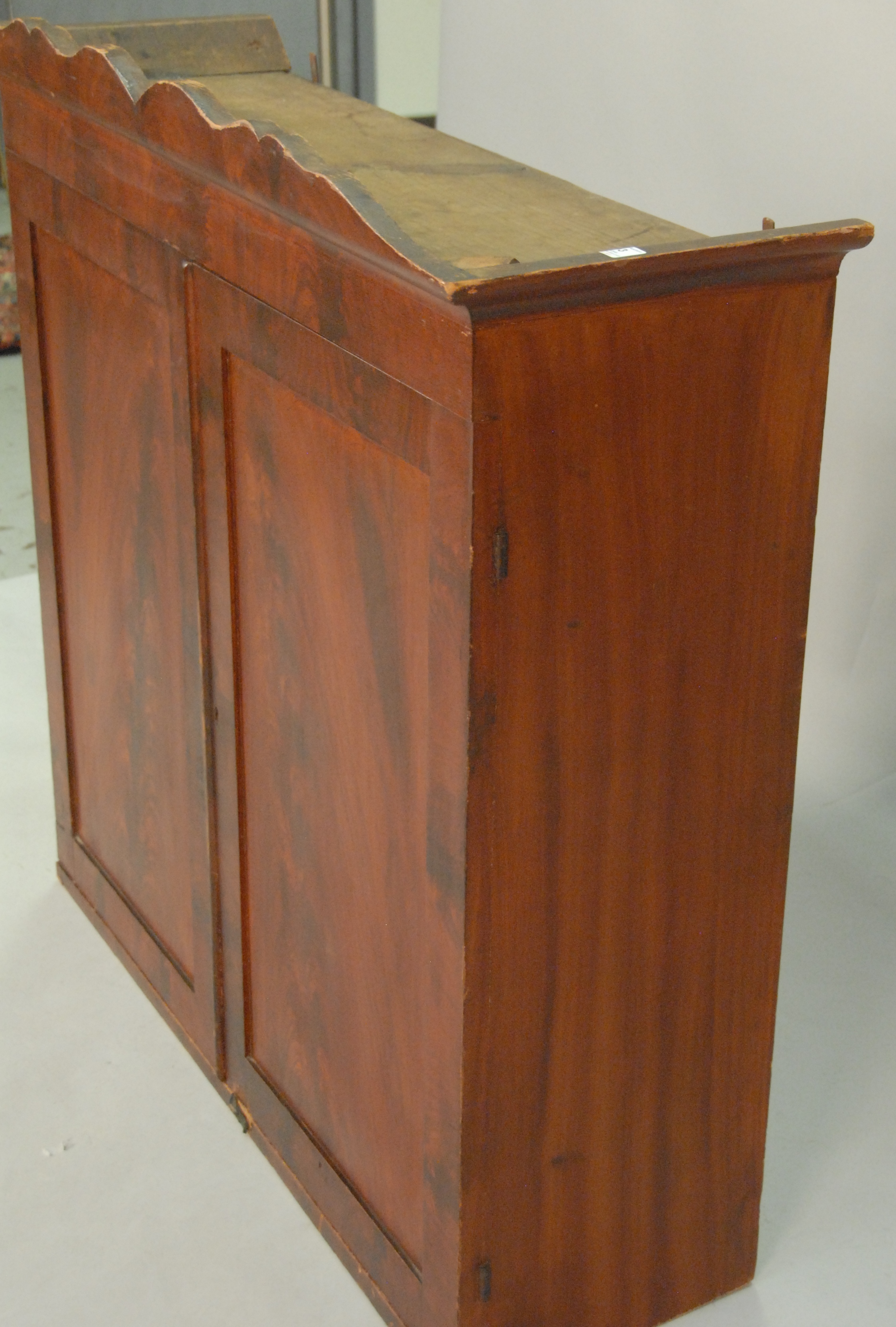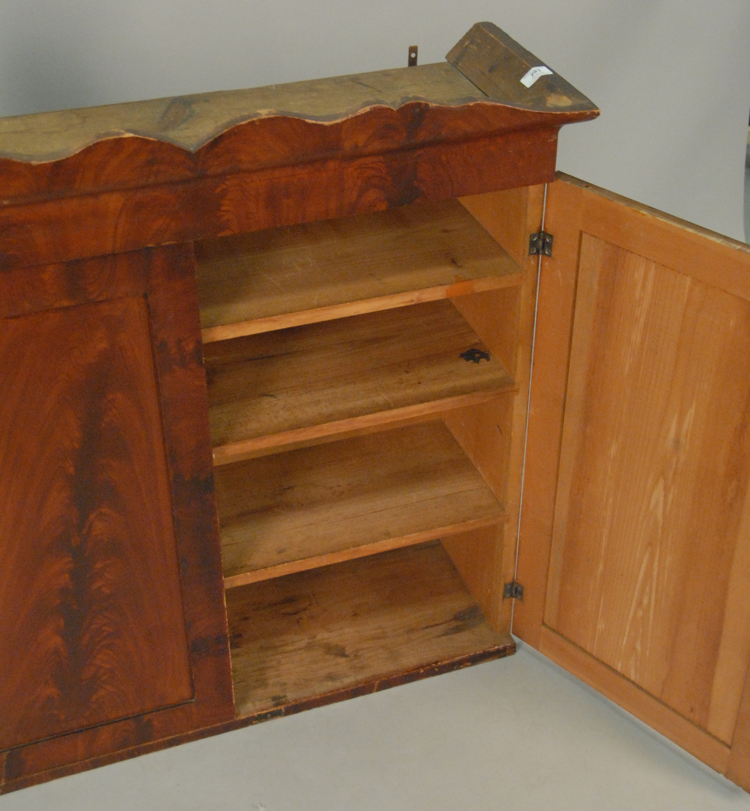 Two door cupboard, pine with original grain paint, early 19th century. ht. 38in., wd. 35in.
