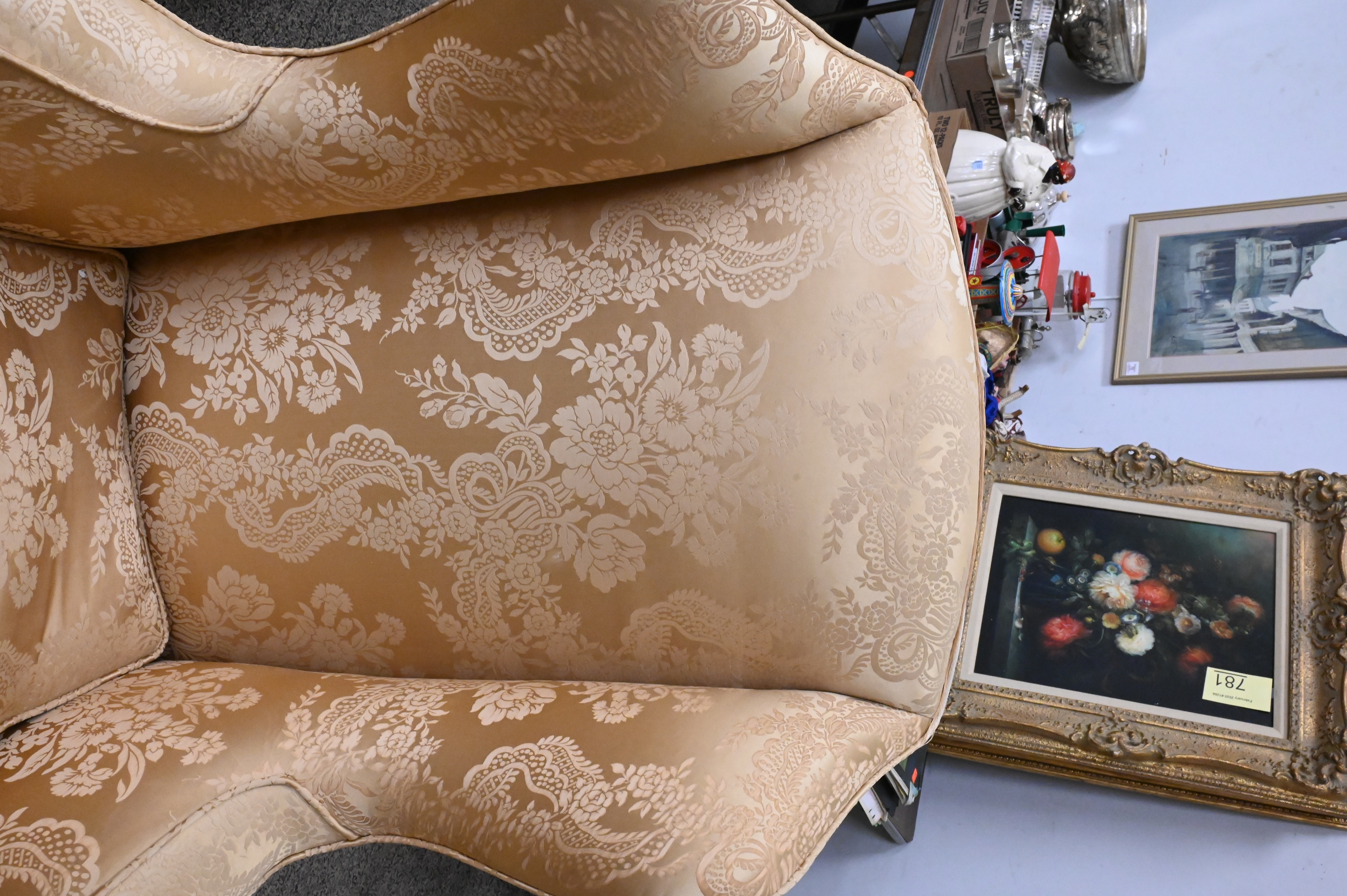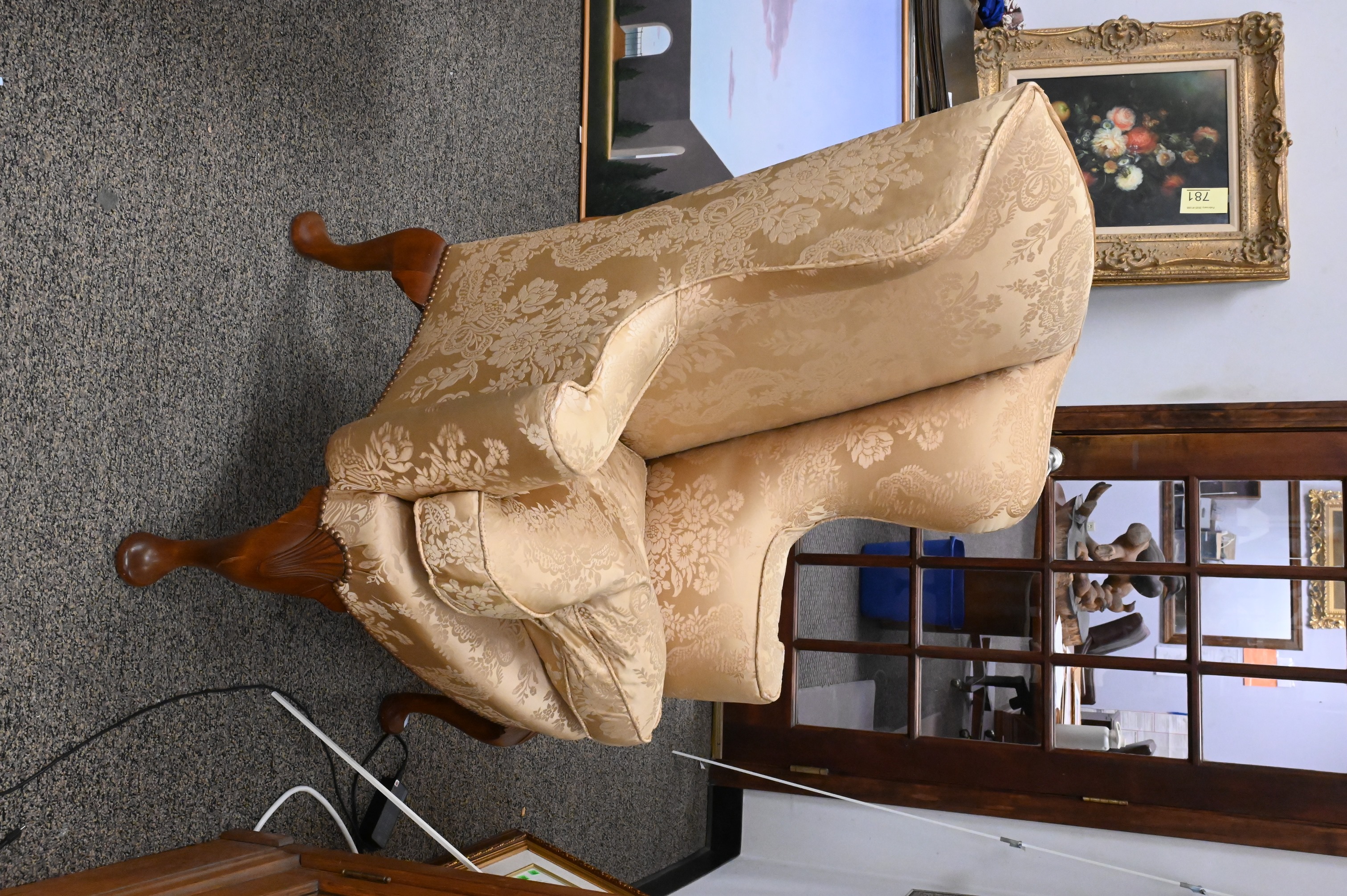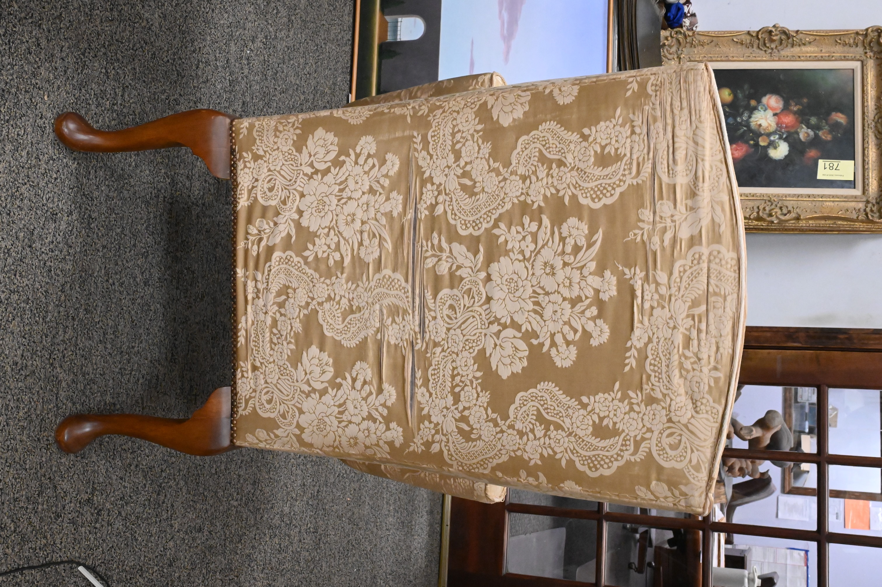 Lot 293: William Tillman Mahogany Queen Anne Style Upholstered Wingback Armchair