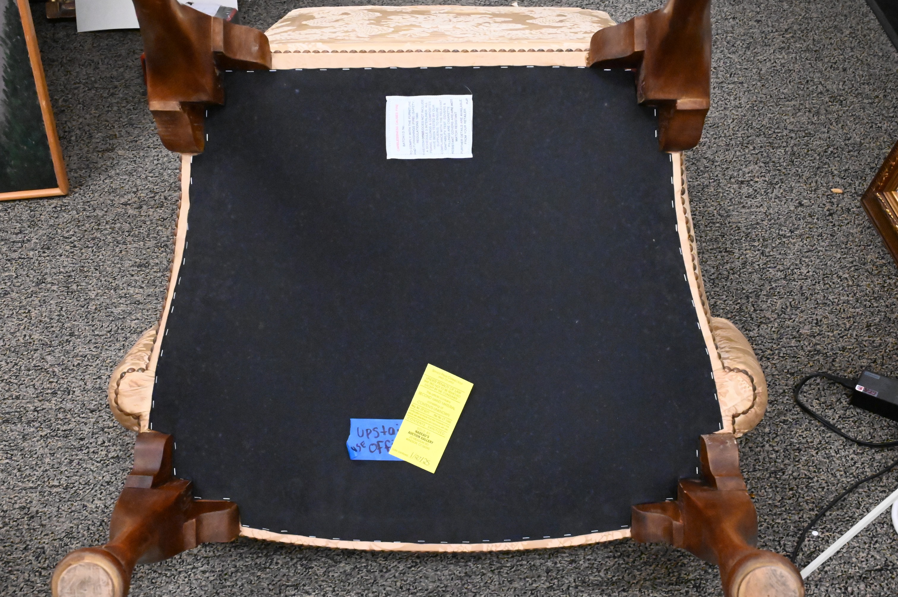Condition: tears to back of upholstery and fraying to arms