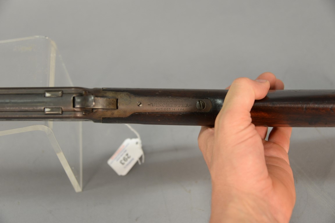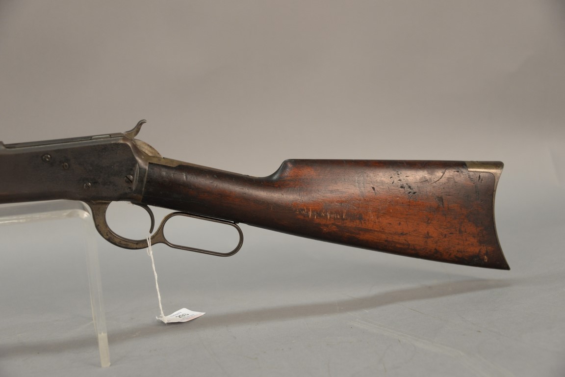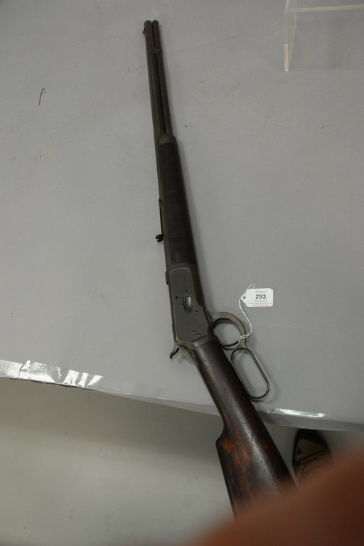 Lot 293: Winchester lever action rifle, model 1892, 32 W.C.F. 24 barrel, octagon barrel, crescent stock bone is bright with good rifling and…