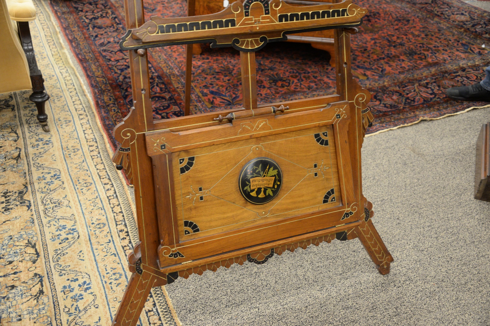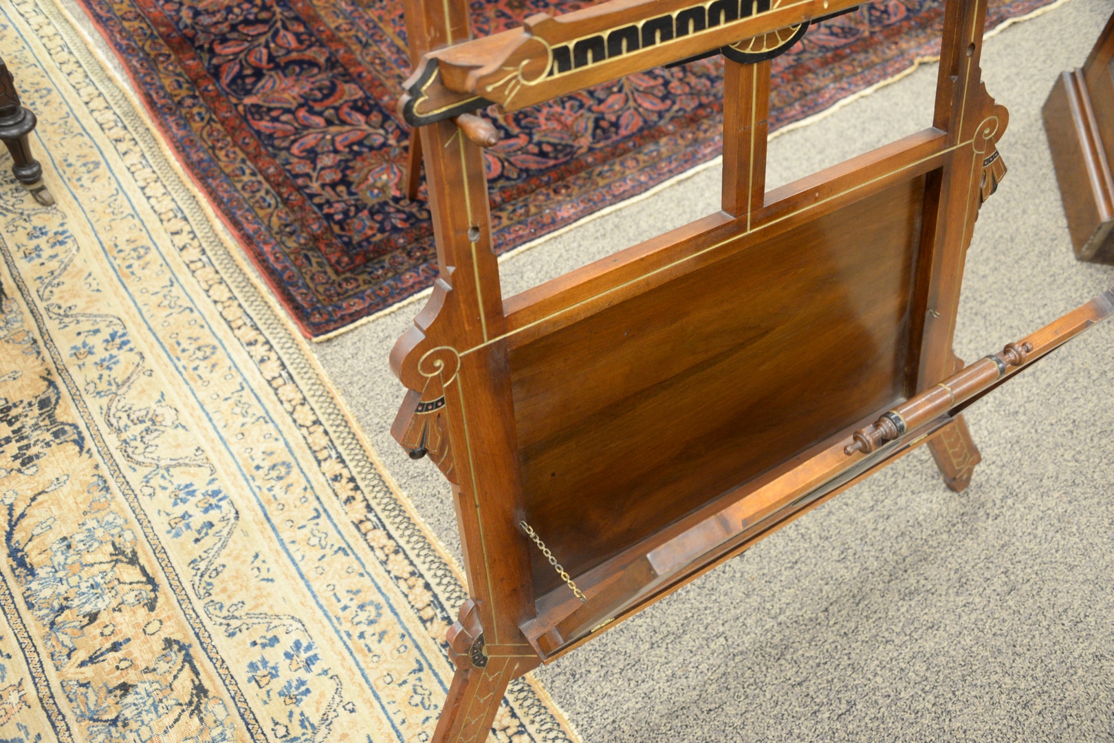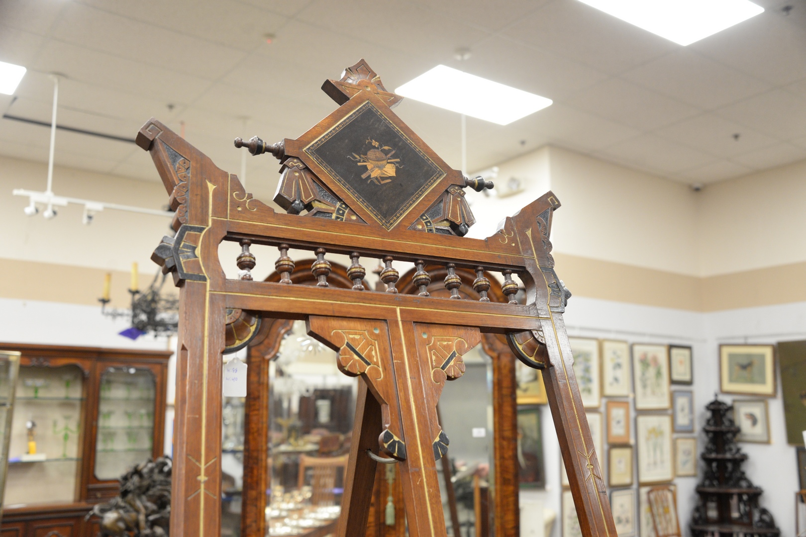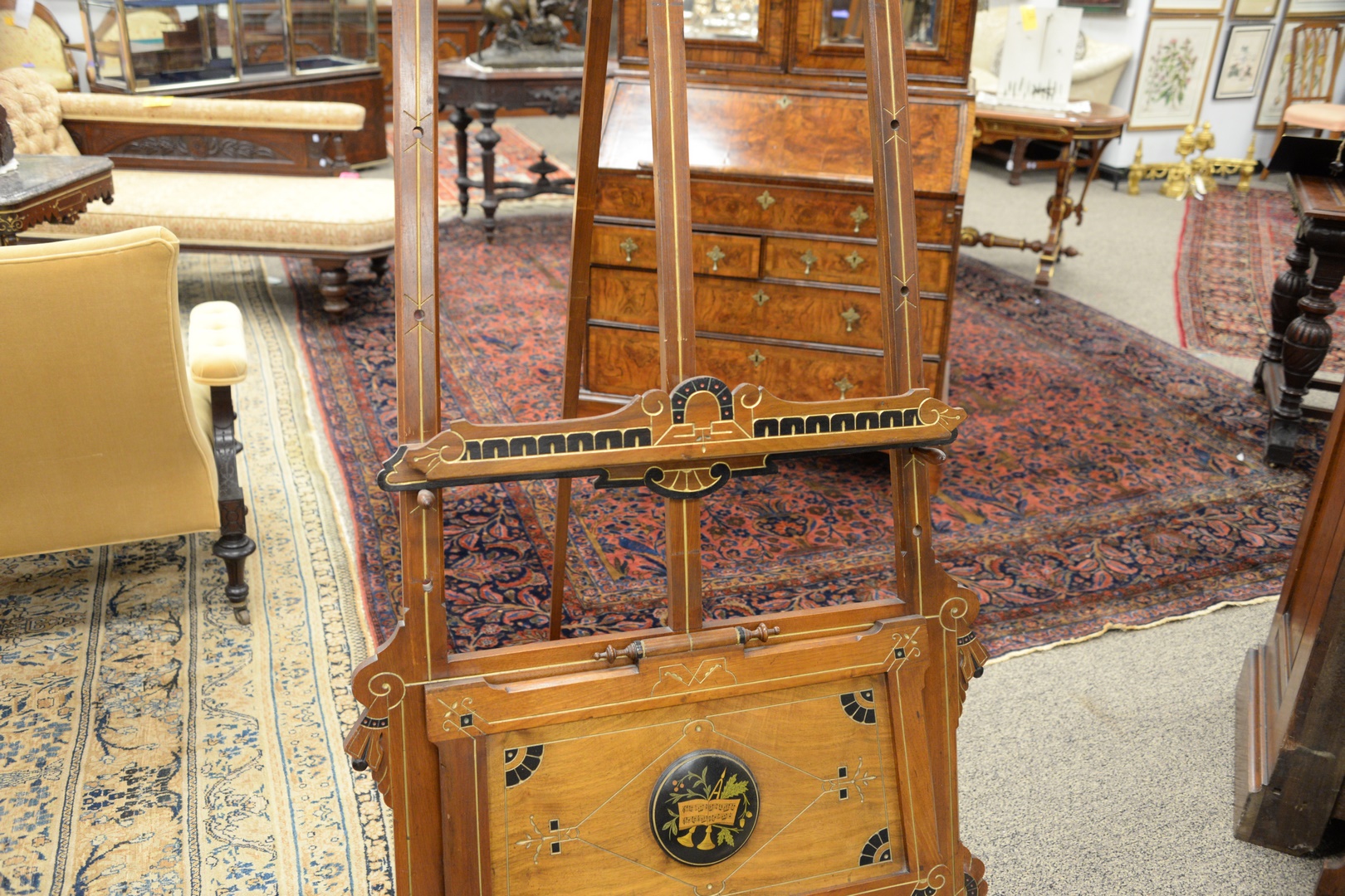 Lot 294: Aesthetic Walnut Easel with portfolio holder having inlaid and ebonized highlights height 87 inches, width 40 inches Provenance: Mat…
