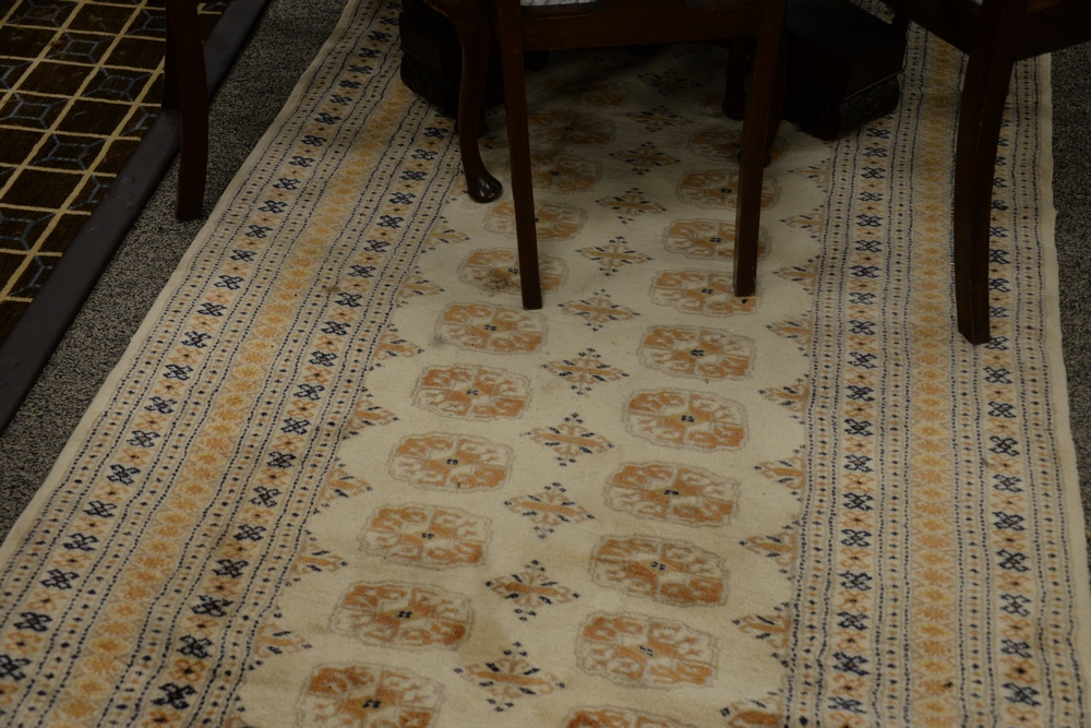 Bokhara Oriental Runner, 4′ 4″ x 12′ 5″.