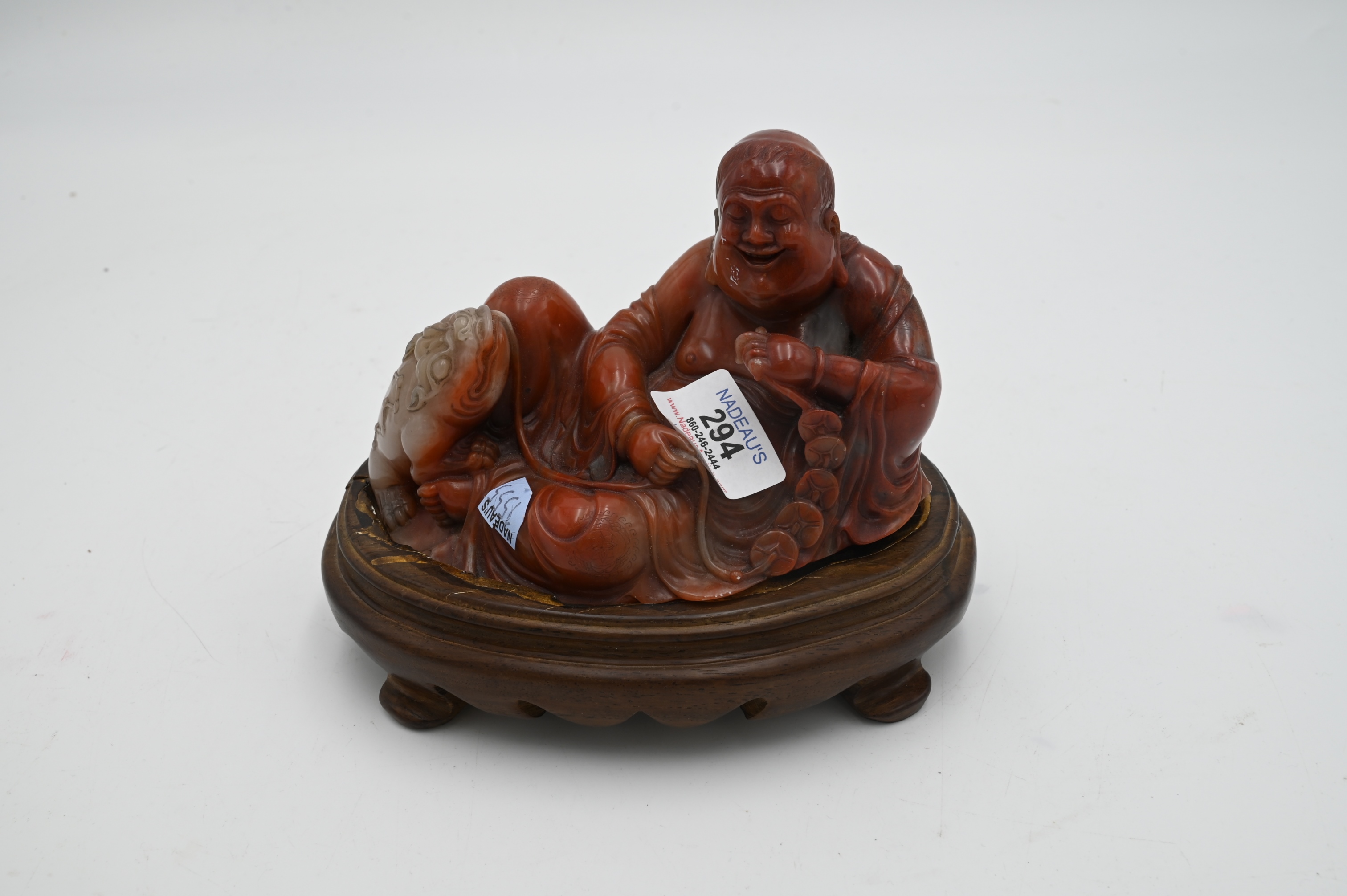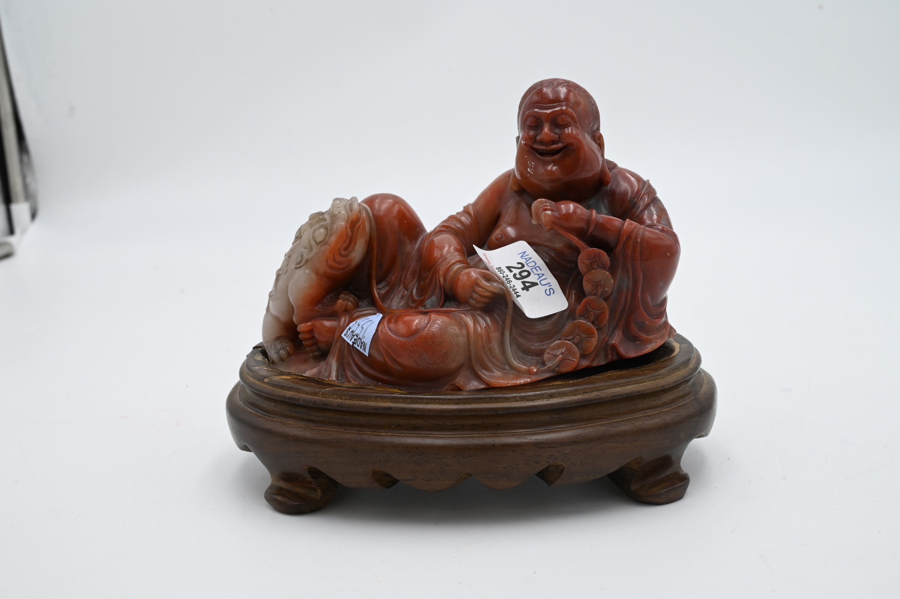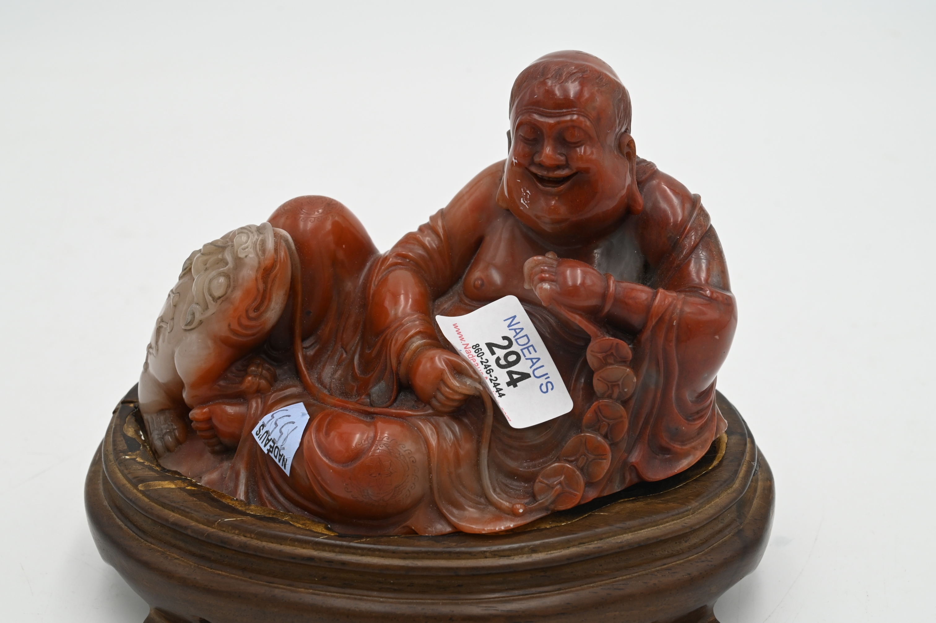 Lot 294: Carved Chinese Stone Budha with Foo Dog