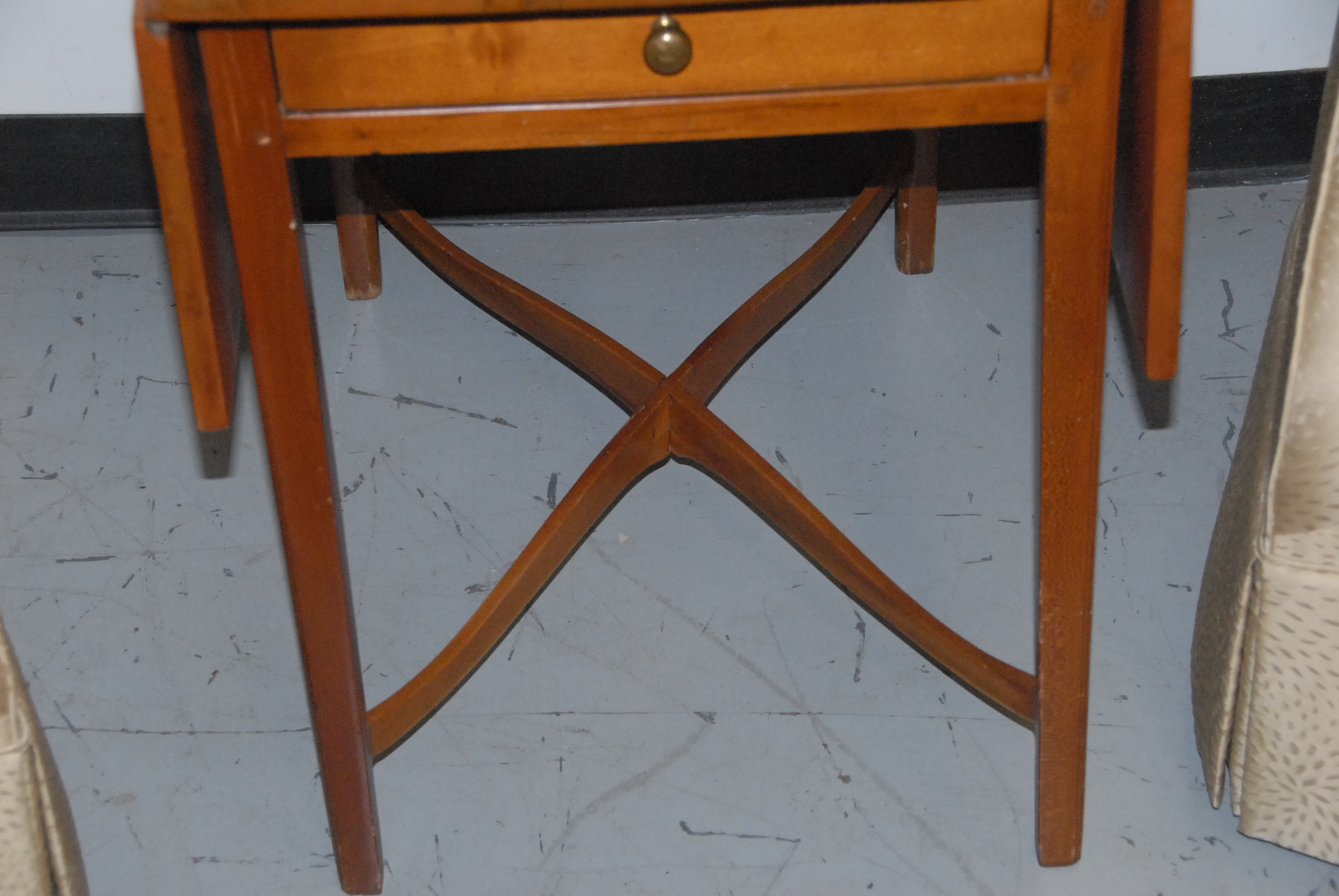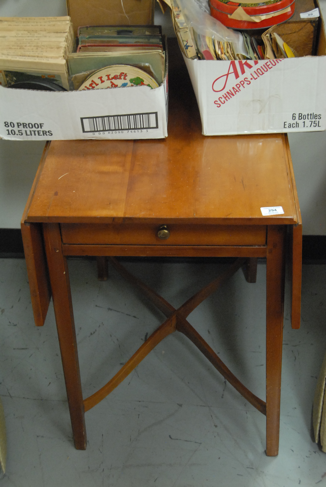 Lot 294: Federal style cherry drop leaf table with one drawer and stretcher base, ht. 28in. wd. 20in. lg. 32in.