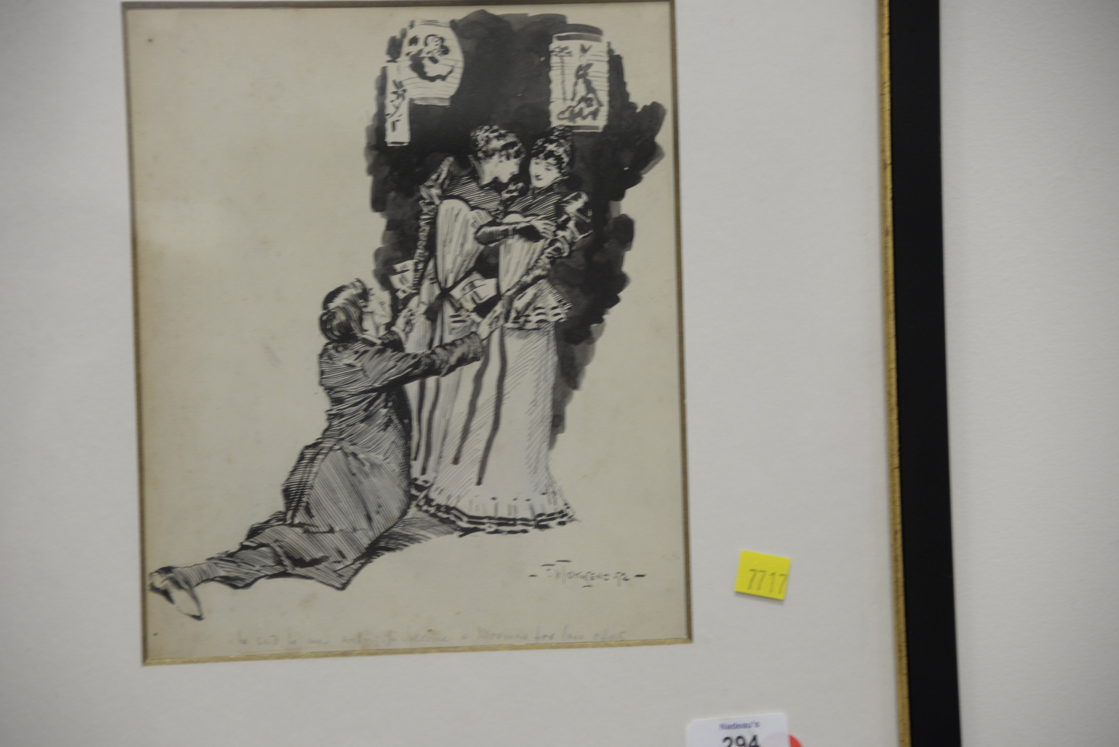 Lot 294: Frederick Henry Townsend 1868-1920 watercolor and ink drawing He said he was willing to become a Morman for love Otis signed low…