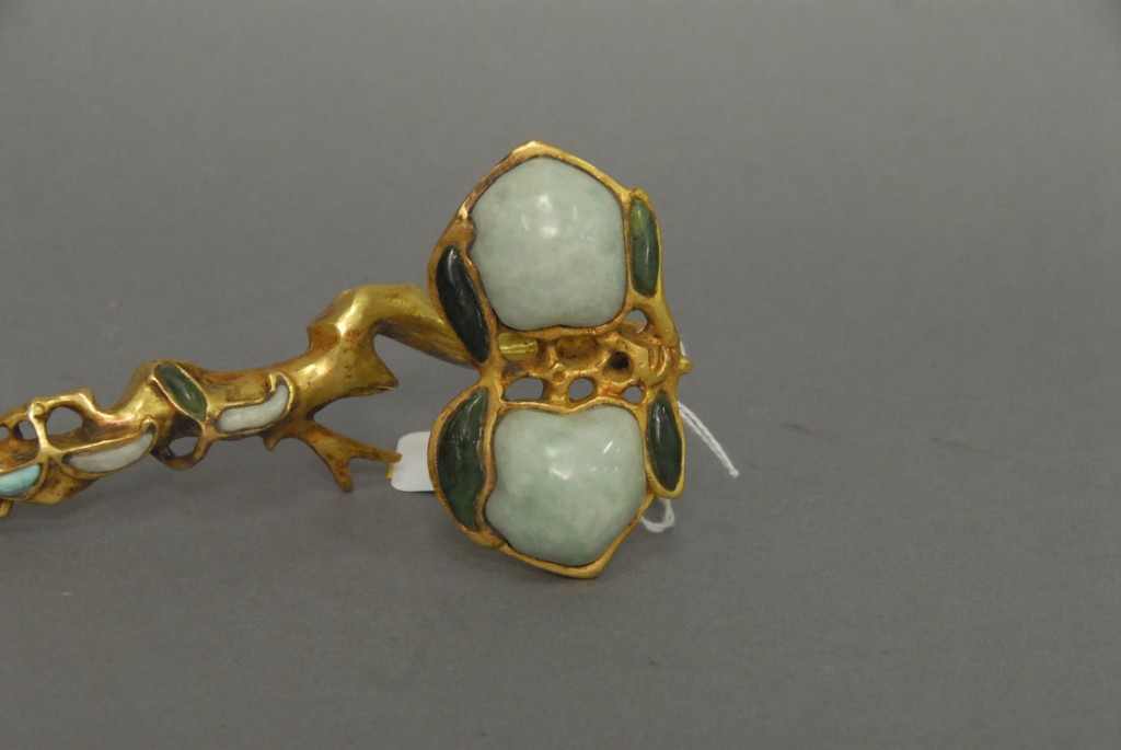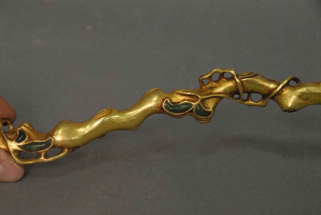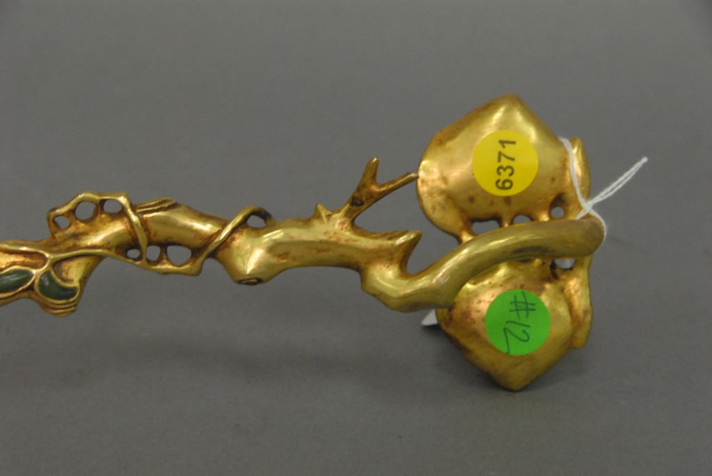Gold gilt bronze ruyi scepter mounted with hardstone, lg. 11 1/2.