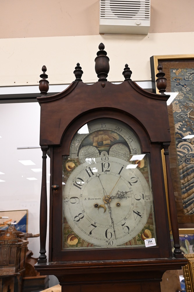 Lot 294: J. Bowman Federal Cherry Tall Case Clock