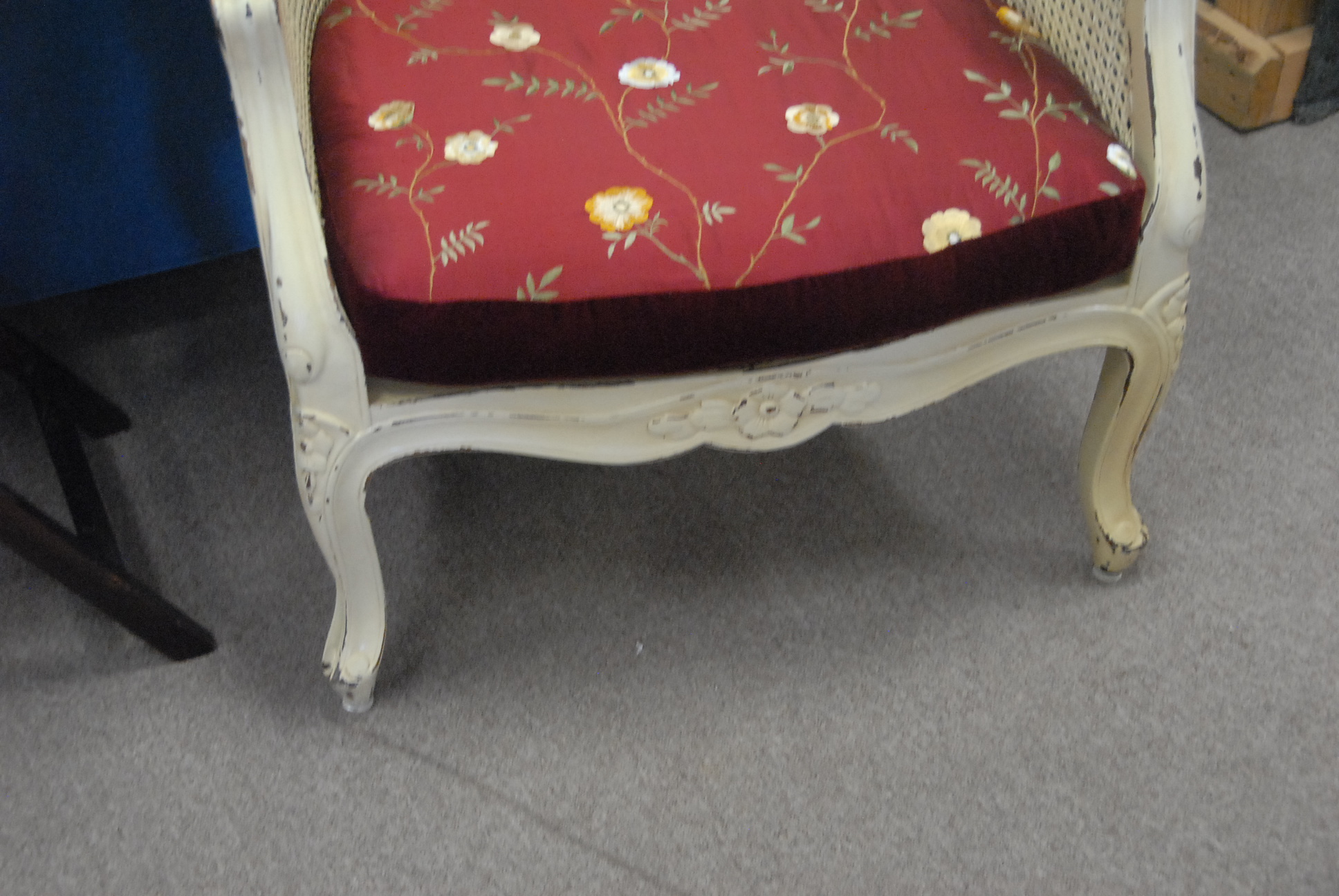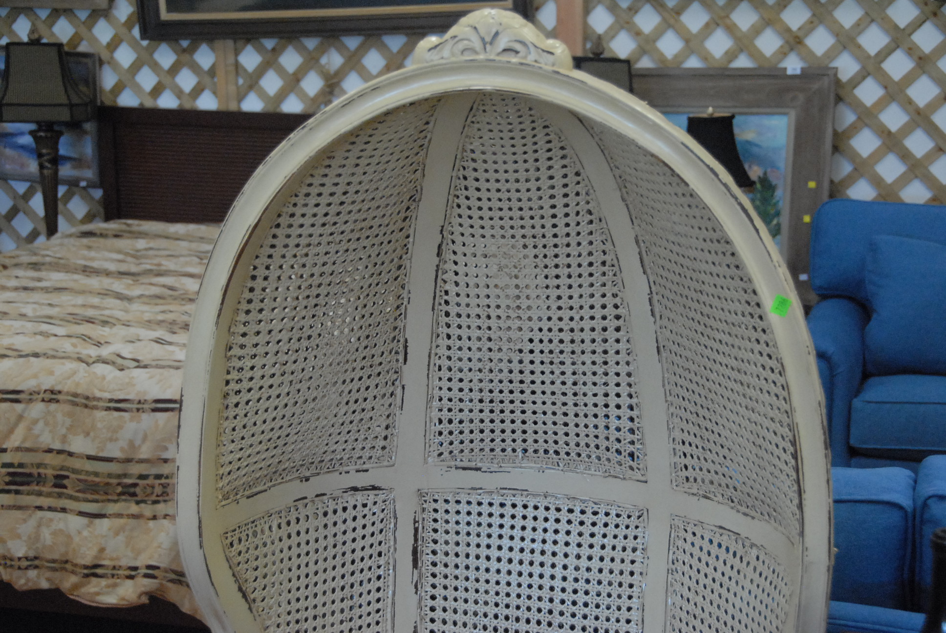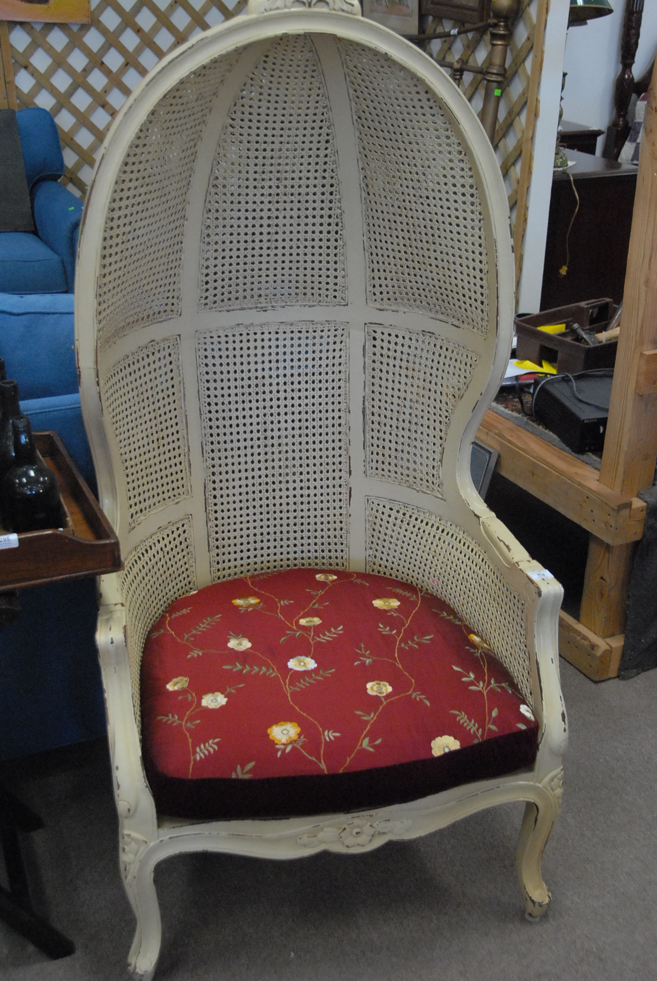 Lot 294: Pair of caned hooded armchairs with upholstered cushions, ht. 60in.