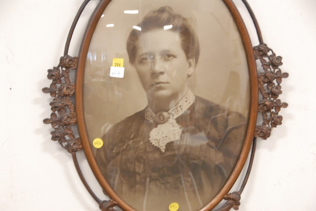 Pair of metal frames with bowed glass.