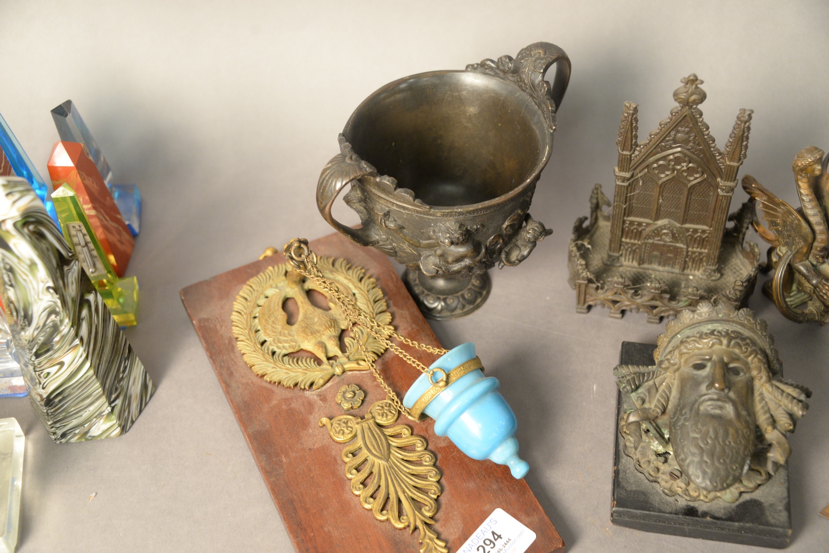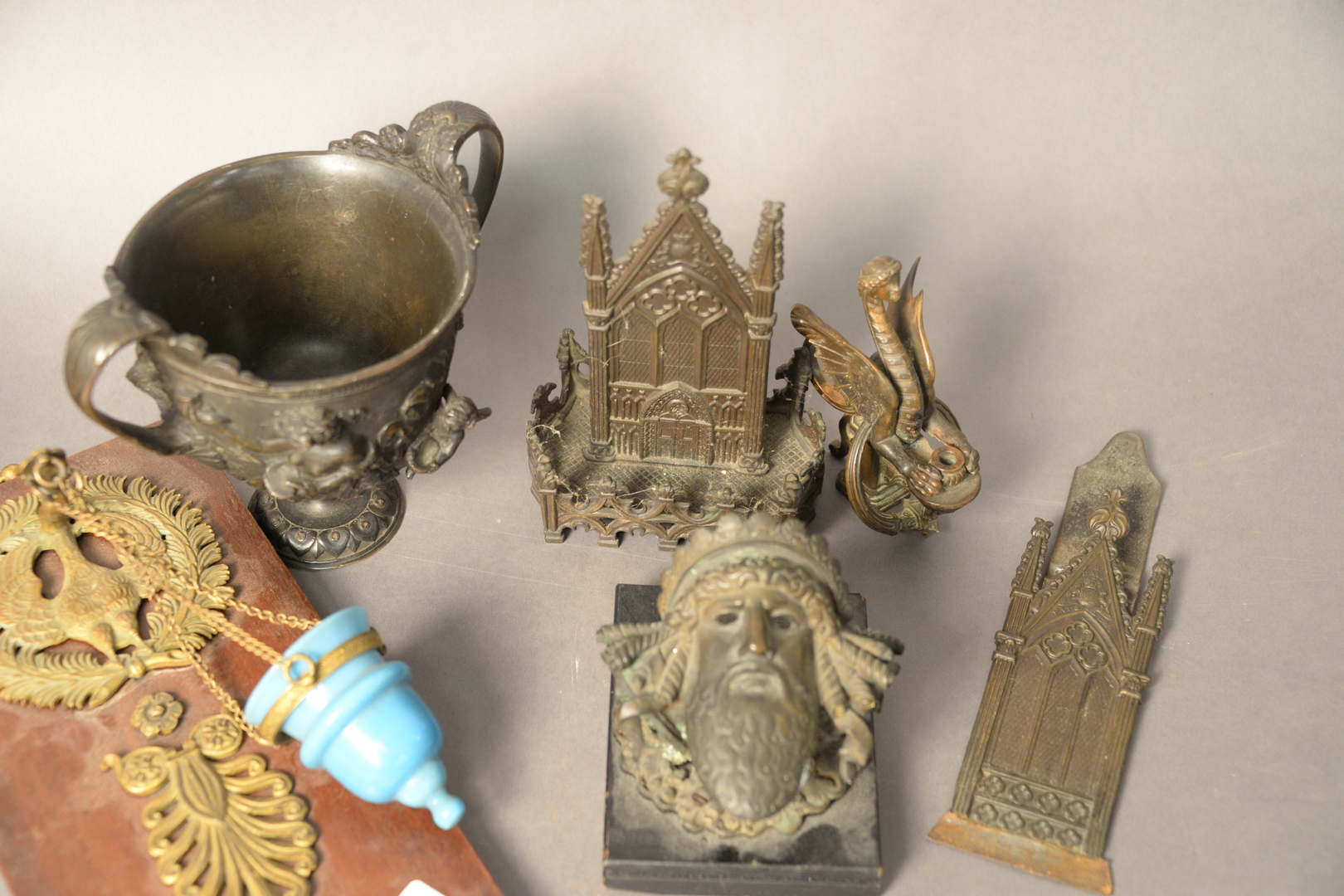 Six Piece Group, to include bronze figural urn, Grand Tour bronze, etc, urn height 6 inches.