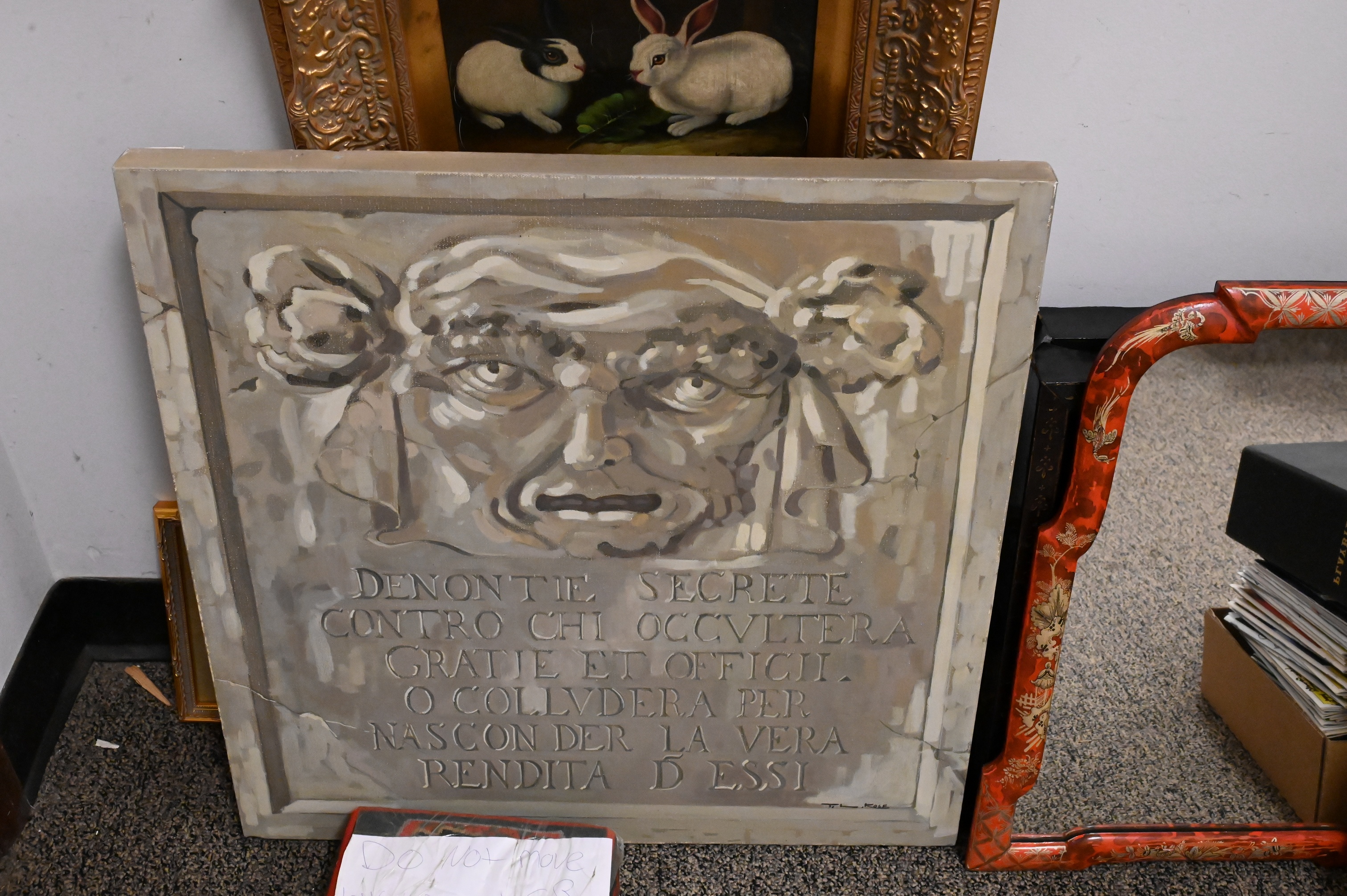 Venetian “Denontie Secrète”, Tax evasion grotesque face trompe l’oeil, Oil on canvas, Signed T.L. Rose