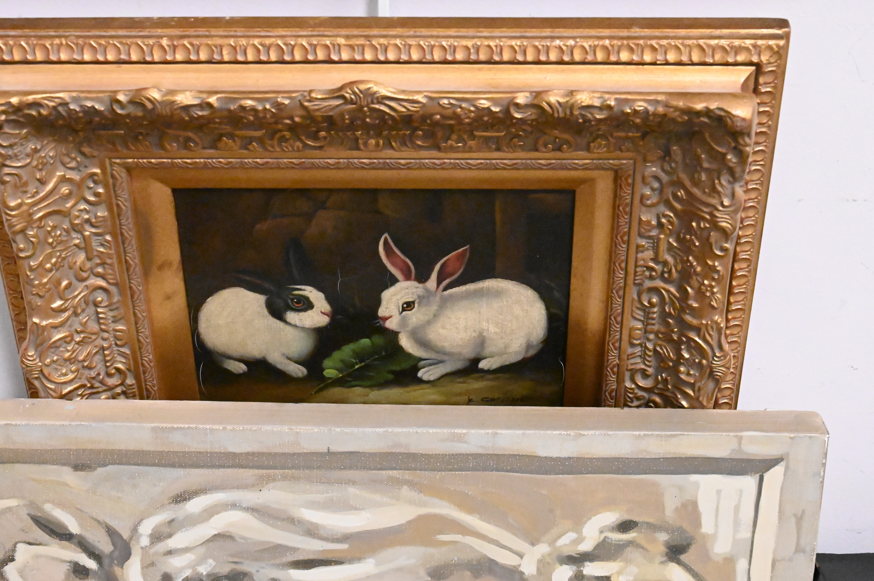 Two bunny rabbits, Oil on canvas, Signed lower right K. Christie, label on verso