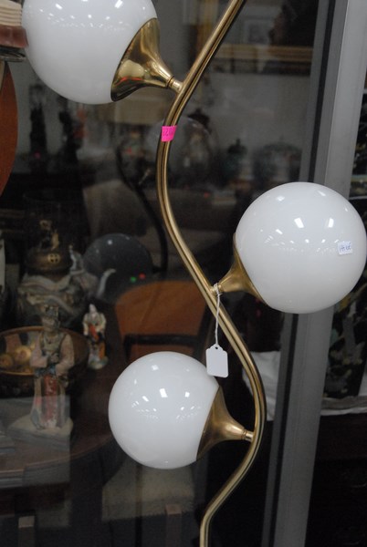 Lot 294: Two piece lot to include an Italian Mid-Century three way lamp in brass and Clover Lamp brass floor lamp with three shades ht. 66in.
