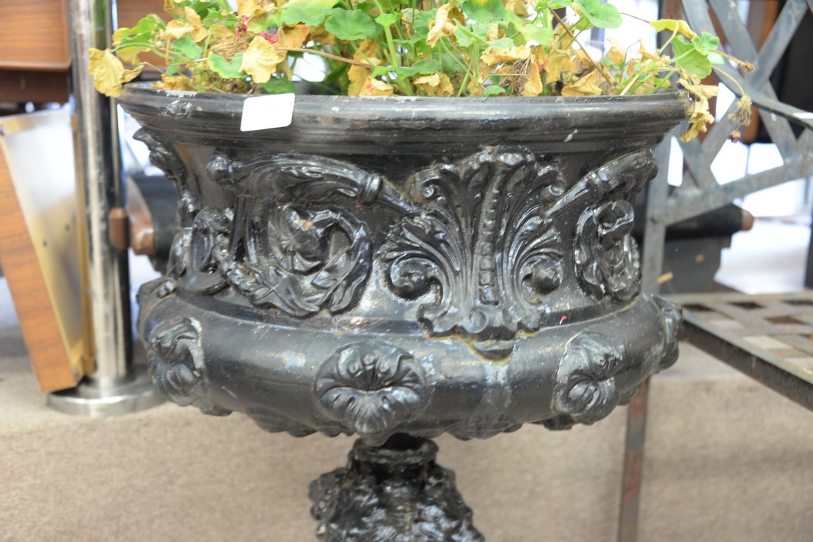 Lot 294: Victorian iron urn. ht. 27 1/2in.