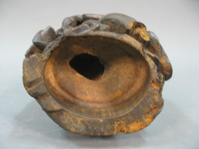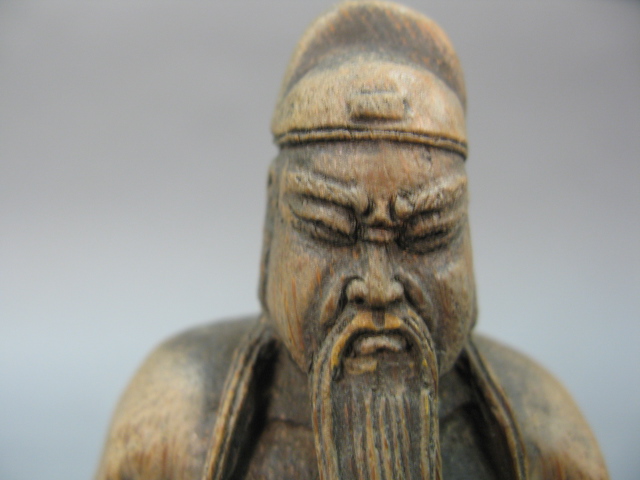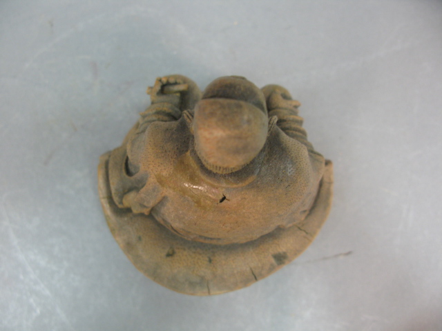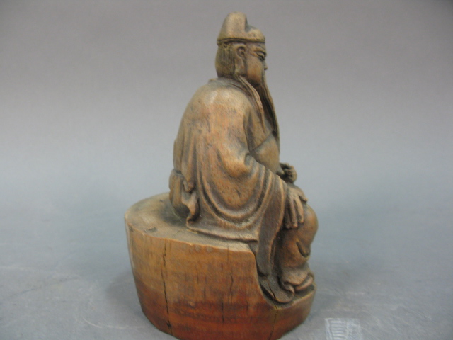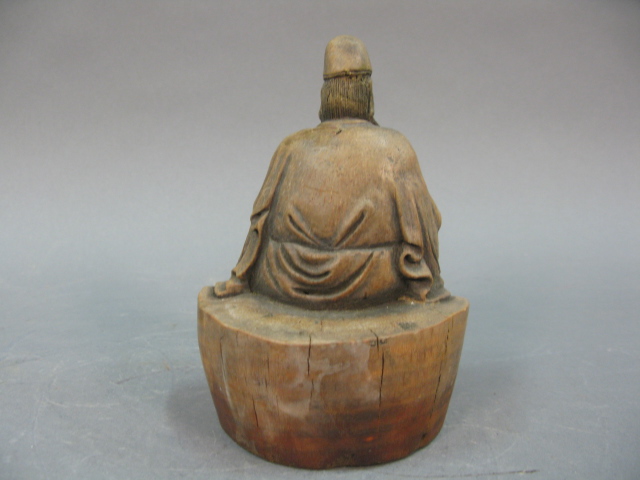 Carved bamboo seated Buddha figure.