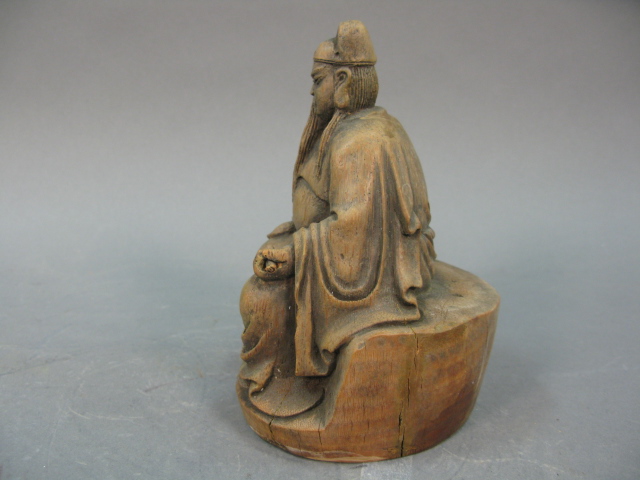 Lot 295: Carved bamboo seated Buddha figure.