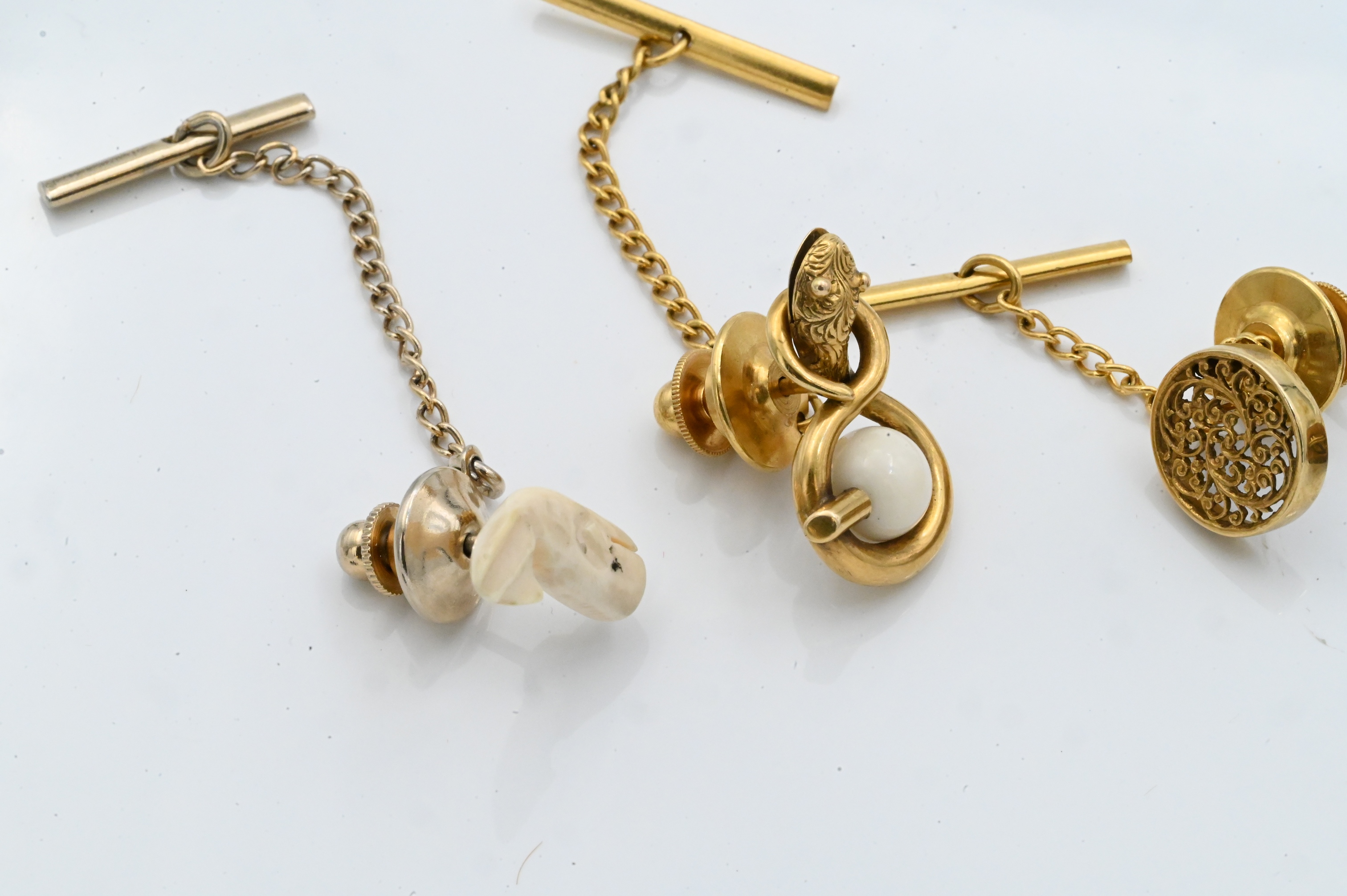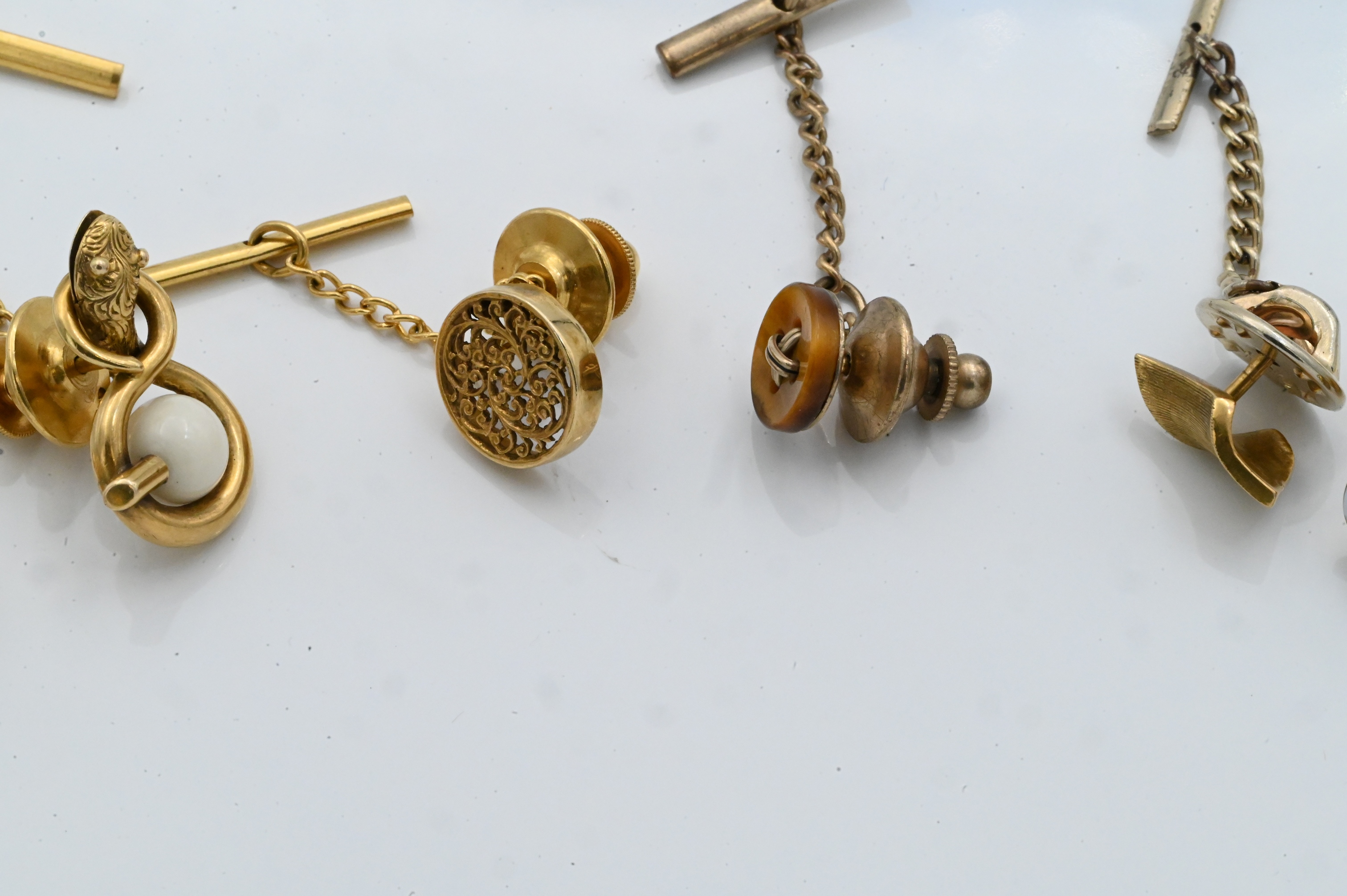 Lot 295: Group of Six 14K Yellow Gold and Gold-Tone Tie Tacks